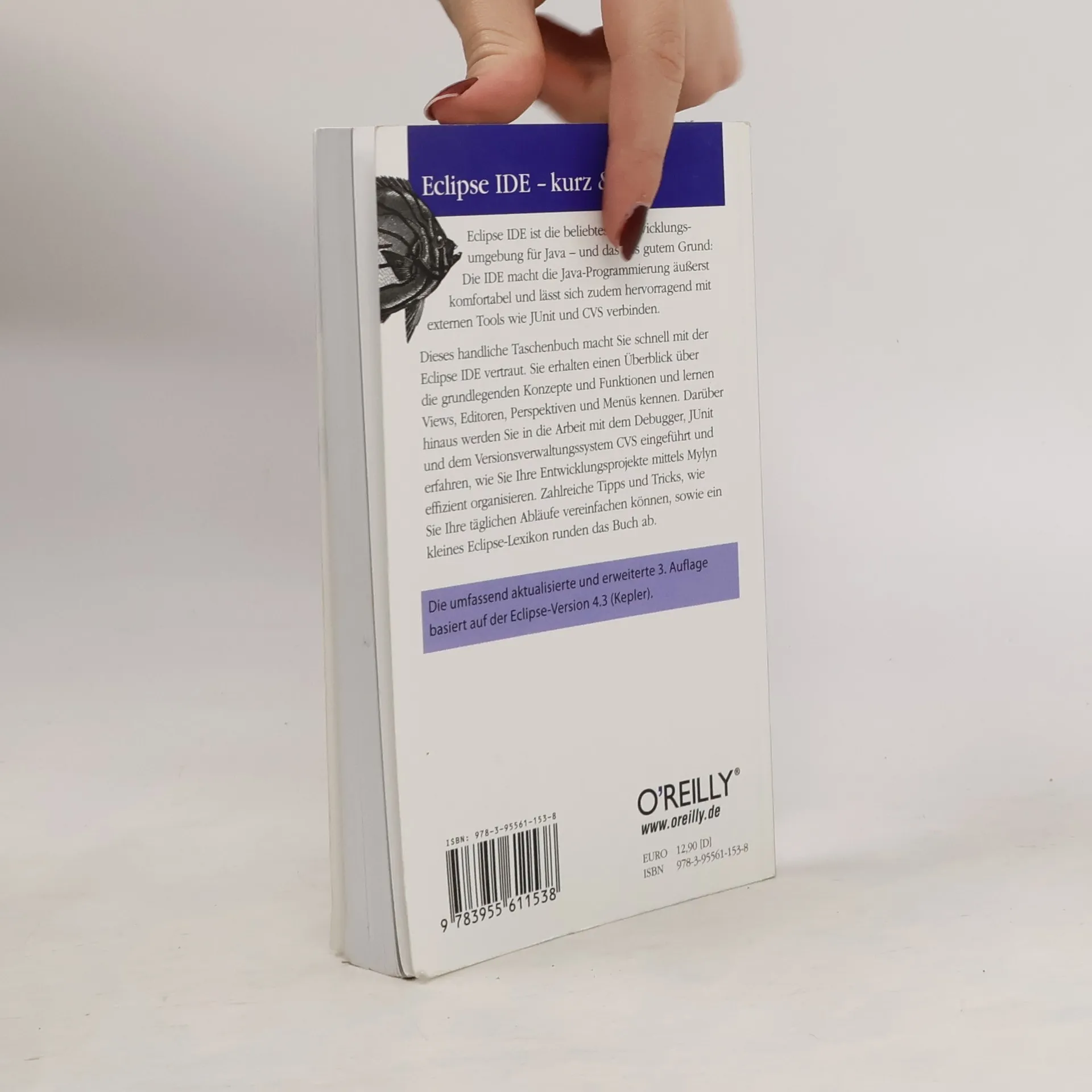 Eclipse IDE ist die beliebteste Entwicklungsumgebung für Java - und das aus gutem Grund: Die IDE macht die Java-Programmierung äußerst komfortabel und lässt sich zudem hervorragend mit externen Tools wie JUnit und CVS verbinden. Dieses handliche Taschenbuch macht Sie schnell mit der Eclipse IDE vertraut. Sie erhalten einen Überblick über die grundlegenden Konzepte und Funktionen und lernen Views, Editoren, Perspektiven und Menüs kennen. Darüber hinaus werden Sie in die Arbeit mit dem Debugger, JUnit und dem Versionsverwaltungssystem CVS eingeführt und erfahren, wie Sie Ihre Entwicklungsprojekte mittels Mylyn effizient organisieren. Zahlreiche Tipps und Tricks, wie Sie Ihre täglichen Abläufe vereinfachen können, sowie ein kleines Eclipse-Lexikon runden das Buch ab. Die umfassend aktualisierte und erweiterte 3. Auflage basiert auf der Eclipse-Version 4.3.
