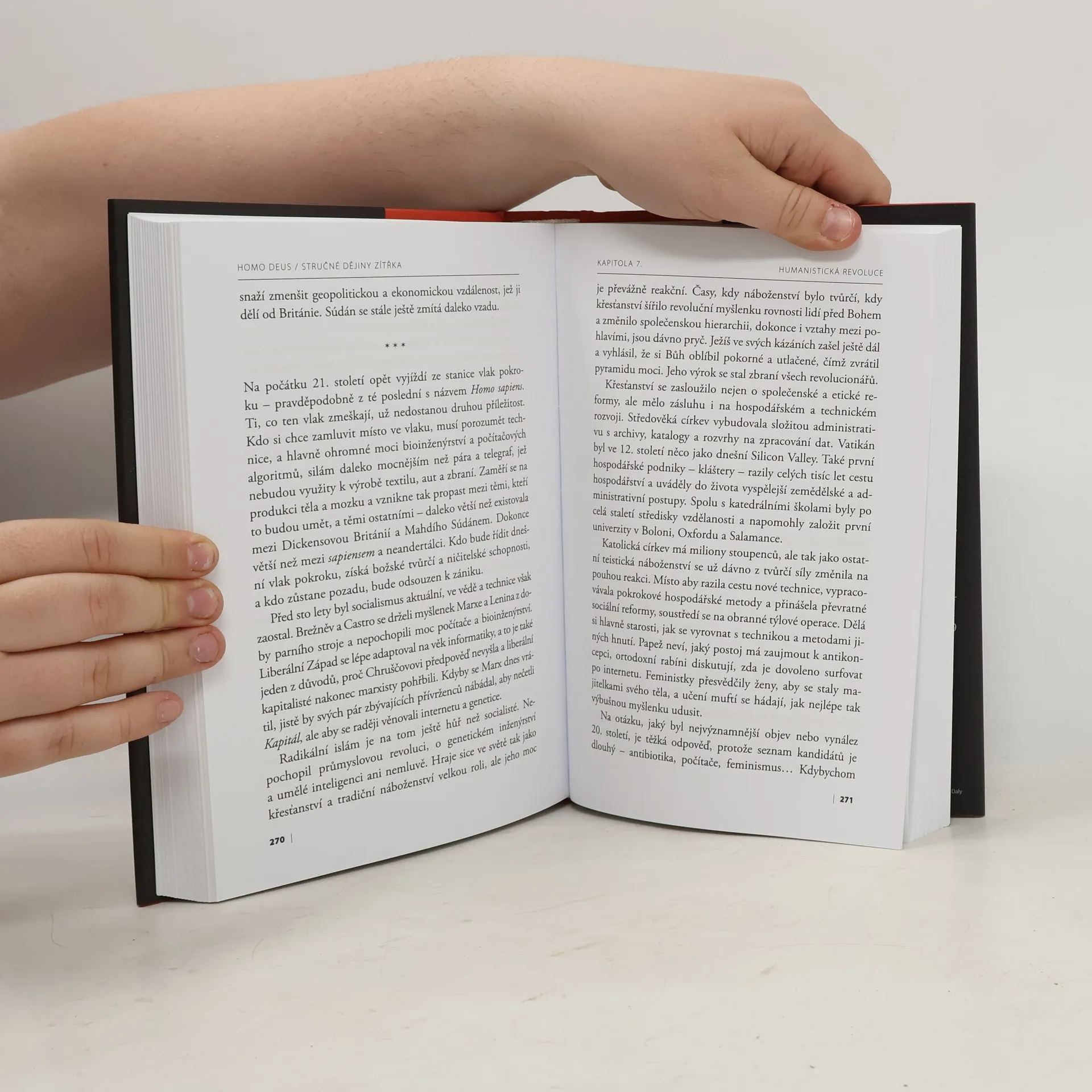 Po bestselleru Sapiens – Úchvatný i úděsný příběh lidstva obrací Yuval Noah Harari zájem k budoucnosti. Analyzuje, jaké důsledky mohou nastat, když se tradiční kolektivní mýty lidstva utkají s novými „božskými“ technologiemi, jako jsou např. umělá inteligence nebo genetické inženýrství. Harari představuje vizi nepříliš vzdáleného světa, v němž zřejmě budeme čelit novým typům výzev. V knize Homo deus – Stručné dějiny zítřka zkoumá naši budoucnost svým typickým způsobem, v němž kombinuje především historii, filozofii a přírodní vědy, ale i poznatky dalších oborů. Jak to dopadne s demokracií, když firmy jako Google a Facebook budou znát naše záliby a preference (včetně politických) lépe než my sami? Co se stane se sociálním státem, jestliže počítače budou úspěšné na trhu práce a vznikne tak počtem většinová třída „zbytečných lidí“? Jak naloží s genetickým inženýrstvím např. islám? Budou v Silicon Valley vyvíjet jenom nová technická zařízení, nebo i nová náboženství? Když se z Homo sapiens stane Homo deus, jaké nové cíle si vytyčíme? Jaké projekty bychom se měli snažit uskutečnit a jak ochráníme tuto křehkou planetu a lidstvo samotné před našimi vlastními ničivými silami? Kniha Homo Deus nám poskytuje vhled do snů a nočních můr, které budou utvářet 21. století – od překonání smrti po vytvoření umělého života. Nabízí svoji odpověď na základní otázku po dalším vývojovém stupni lidstva: Kam odtud jdeme? Kam půjde Homo Deus?