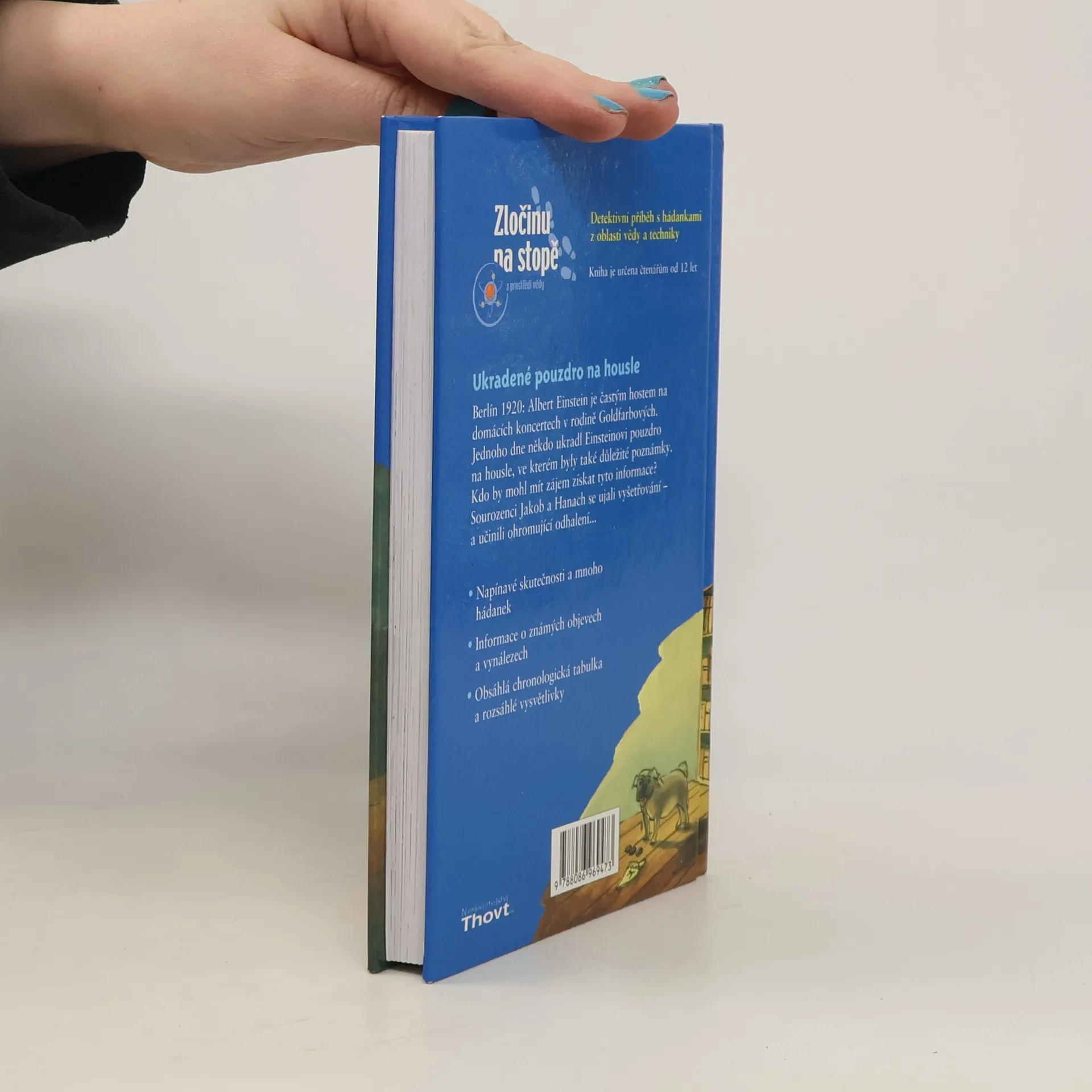 Berlín 1920: Albert Einstein je častým hostem na domácích koncertech v rodině Goldfarbových. Jednoho dne někdo ukradl Einsteinovi pouzdro na housle, ve kterém byly také důležité vzorečky. Kdo by mohl mít zájem získat tyto poznámky? Sourozenci Jakub a Hana se ujali vyšetřování – a učinili ohromující odhalení... (www.thovtknihy.net)