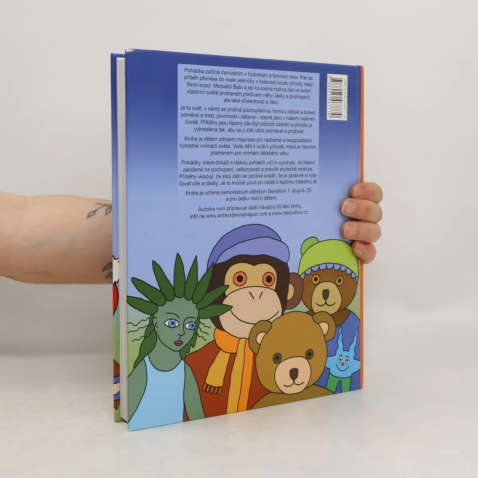 Knížka Medvědí Babi je pohádkový příběh z Medvídkova, vesničky, kterou vyčaroval roztržitý skřítek Buměj. Medvídkov leží v malém údolí, na jedné straně kopec a louka, co na něm sedí jako zelená čepice, na druhém konci potůček a za ním lesík plný malin. To je půvabný domov malých přátel, kteří zde prožívají svá dobrodružství. Příběhy jsou veselé i smutné, které ale nakonec dobře dopadnou.
