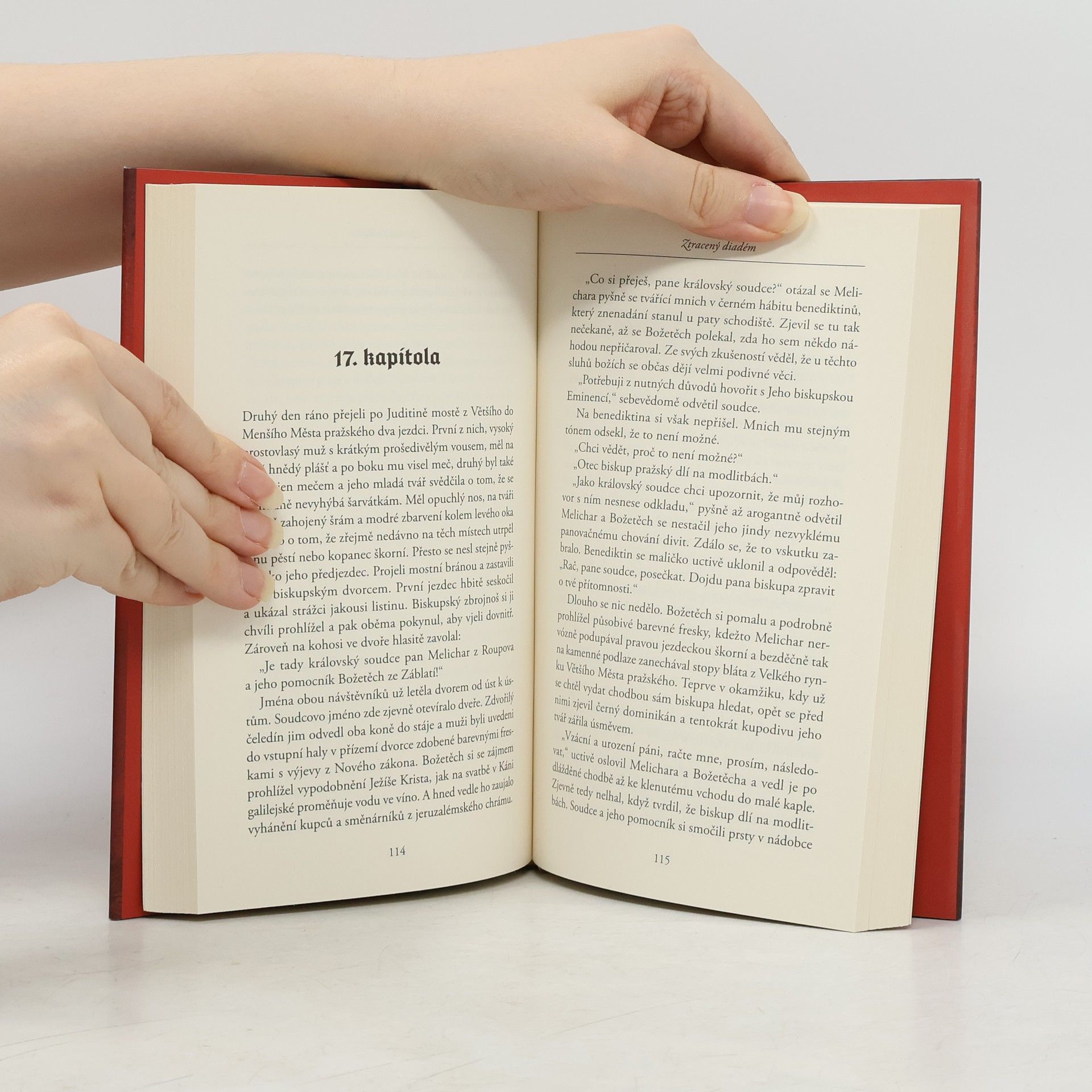Dne 7. února 1311 byl v bazilice sv. Víta na Pražském hradě slavnostně korunován nový český král Jan Lucemburský a spolu s ním i jeho žena Eliška. K její korunovaci byl použit nádherný zlatý a perlami a safíry zdobený diadém, jaký nosila už její matka Guta Habsburská. Od té doby byl uložen spolu s ostatními korunovačními klenoty v klenotnici baziliky sv. Víta. Jenže když si měla královna Eliška při příležitosti křtu svého syna Václava, budoucího Karla IV., podruhé nasadit na hlavu tento vzácný daidém, zjistilo se, že v klenotnici chybí. V podezření z jeho zcizení byl především sám král Jan, který potřeboval peníze na vojenskou pomoc Ludvíkovi Bavorskému proti římskému vzdorokráli Fridrichovi Sličnému. Krále však nebylo možné jen tak obvinit a tak Jindřich z Lipé požádal o vyšetření krádeže diadému královského soudce Melichara z Roupova. Času je však na její objasnění zpropadeně málo. Termín křtu malého Václava se valem blíží a Melichar se ocitá ve velmi nepříjemné situaci.