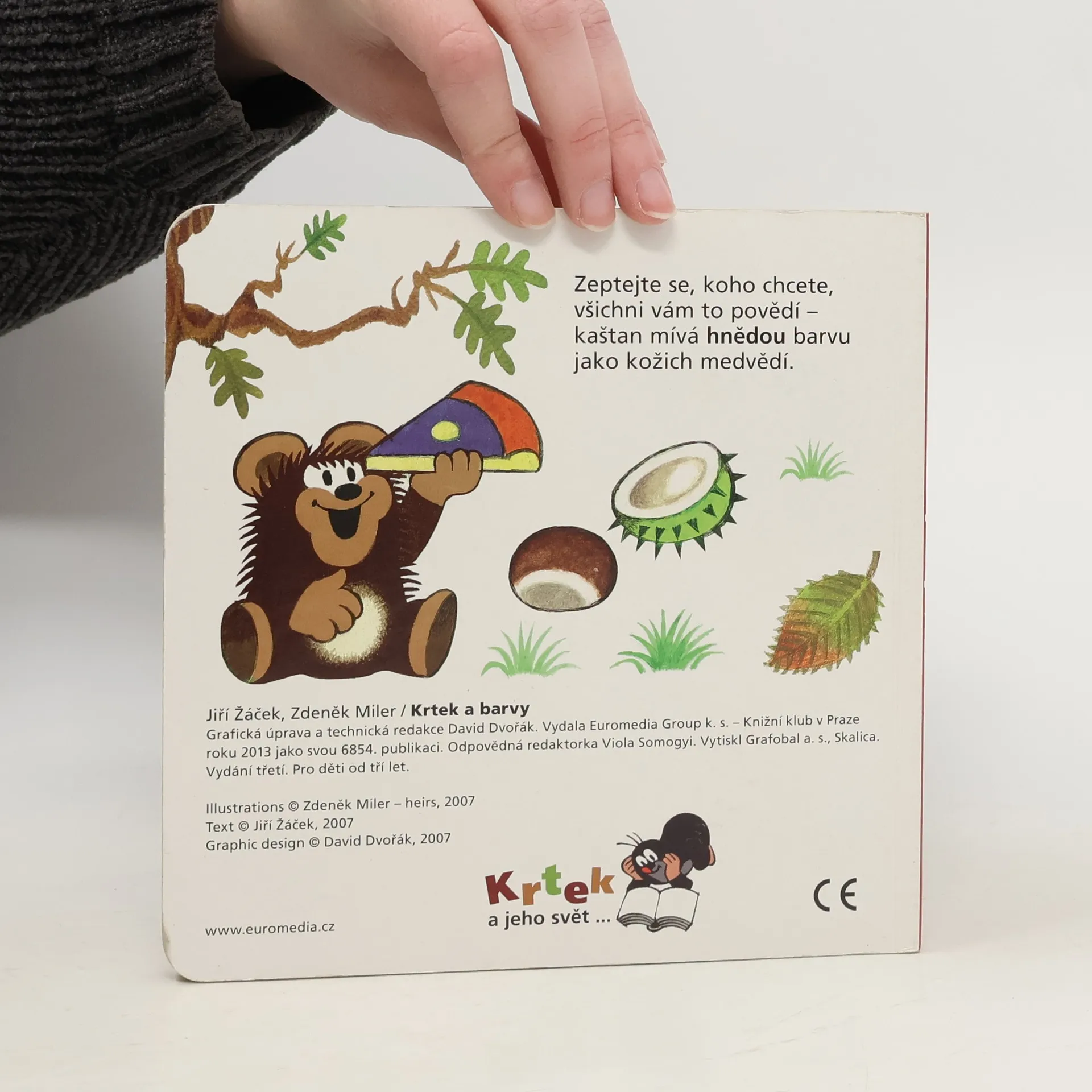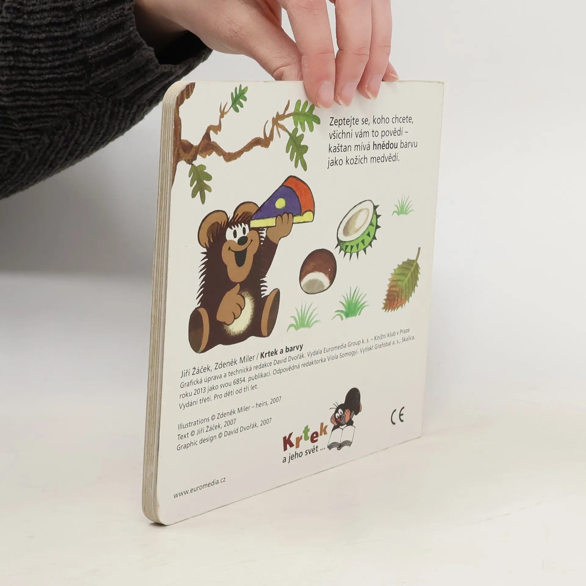 Čtvrtý svazek poznávací řady leporel zavede nejmenší čtenáře do světa barev. S hravými obrázky Zdeňka Milera a jednoduchými vtipnými verši Jiřího Žáčka se děti naučí rozlišovat jednotlivé barvy, které nás obklopují. Učitelem v této škole pro nejmenší je oblíbený Krteček, který si připravil - společně s pejskem, žabkou, mravenečkem, zajícem, medvědem a dalšími kamarády - pro své malé žáčky zvídavé otázky.