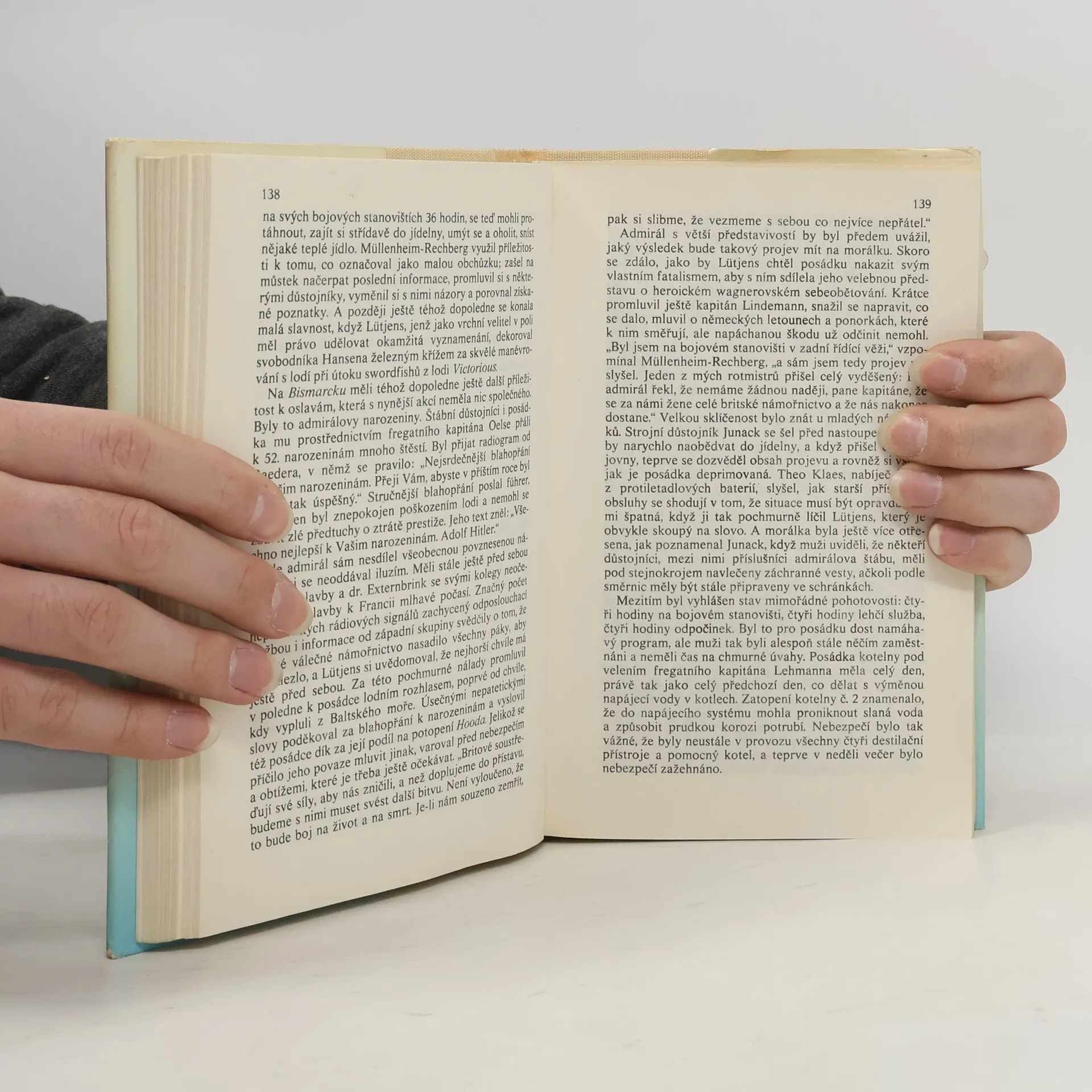 V květnu 1941 pronikla německá bitevní loď Bismarck, tehdy nejmohutnější válečná loď na světě, v rámci operace Rheinübung do Atlantiku, a vážně tak ohrozila obchodní trasy, na nichž byla Británie životně závislá. Britská admiralita zorganizovala mohutnou akci, jejímž jediným cílem bylo její vypátrání, uštvání a potopení. Do pronásledování, jež se v osmi dnech odehrávalo na nesmírných oceánských prostorách, do nějž se zapojili i příslušníci jiných národností a při němž přišlo o život přes 4000 námořníků, bylo zapojeno několik desítek lodí… Krátce po půl jedenácté 27. května 1941 se nad planoucím vrakem bývalé pýchy německého válečného námořnictva zavřela neklidná hladina Atlantiku. Skončila tím i jedna z velkých událostí historie námořního válčení a zaujala místo vedle bitev u Salaminy, Lepanta, anglického loďstva s Armadou, u Trafalgaru, Cušimy, Jutska, Midwaye a v Korálovém moři. Doslov Aleš Skřivan, 2. vydání.