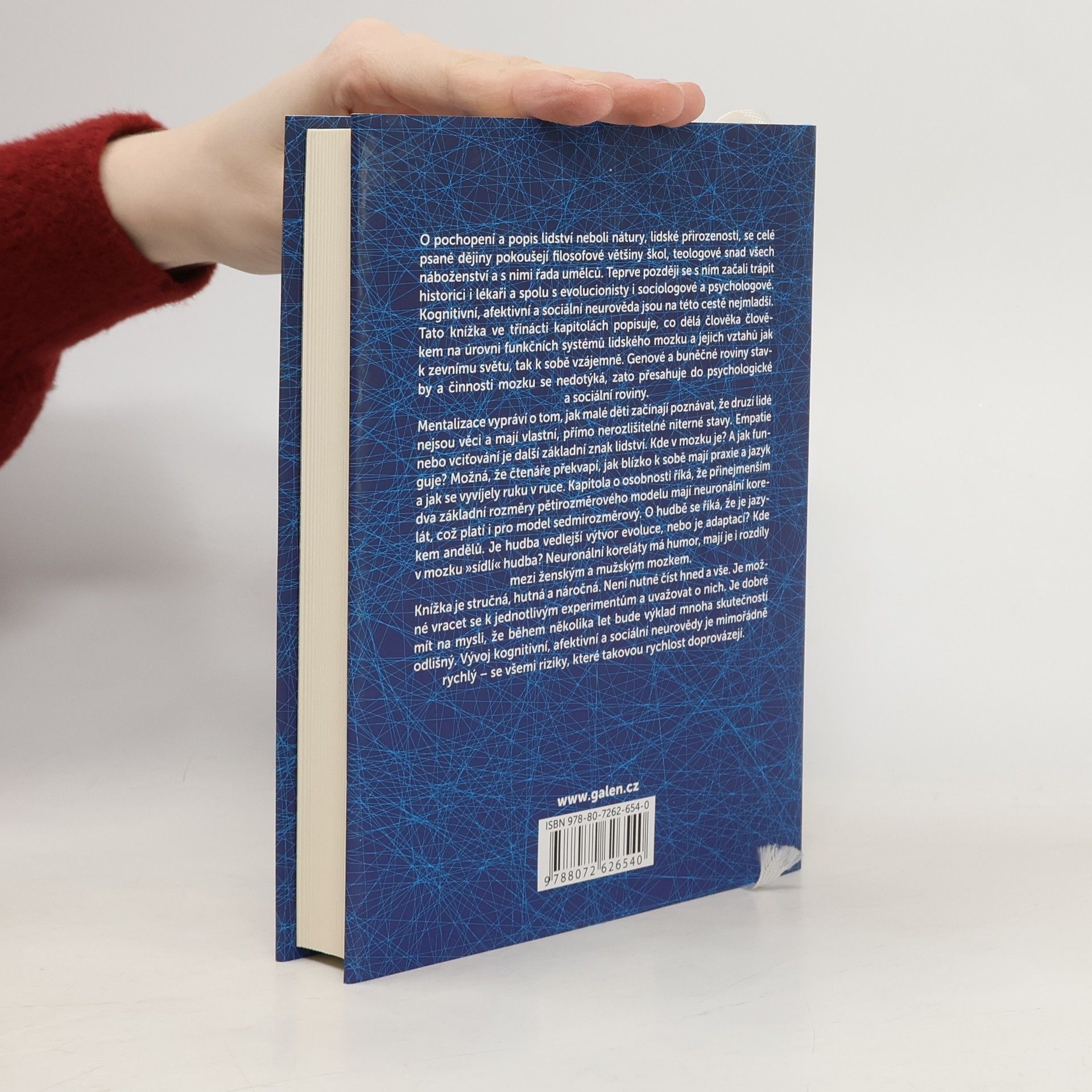 Kniha navazuje na autorovo dílo Sociální mozek a je určena všem zájemcům o výsledky a směřování soudobé kognitivní a afektivní neurovědy - lékařům, psychologům, právníkům i filozofům. Zabývá se neuronálními a evolučními podklady mentalizace, sebeuvědomování, jazyka a praxie, osobnosti a inteligence, hudby,humoru, rozdílů mezi ženským a mužským mozkem, lásky a krásy, morálního, právního a ekonomického rozhodování, náboženství a spirituality.