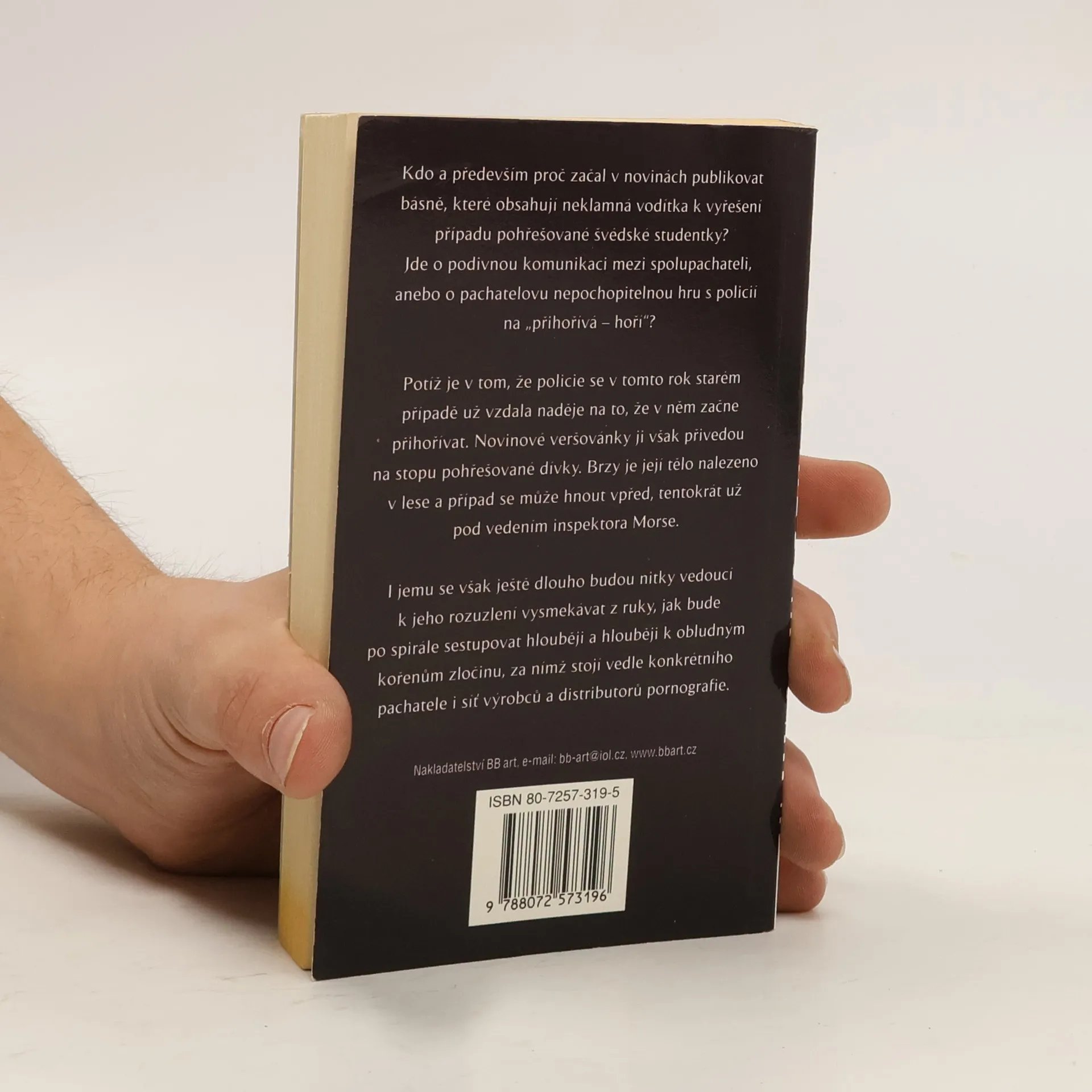 Kdo a pědevším proč začal v novinách publikovat básně, které obsahují neklamná vodítka k vyřešení případu pohřešované švédské studentky? Jde o podivnou komunikaci mezi spolupachateli, anebo o pachatelovu nepochopitelnou hru s policií na „přihořívá - hoří"? Potíž je v tom, že policie se v tomto rok starém případě už vzdala naděje na to, že v něm začne přihořívat. Novinové veršovánky ji však přivedou na stopu pohřešované dívky. Brzy je její tělo nalezeno v lese a případ se může hnout vpřed, tentokrát už pod vedením inspektora Morse. I jemu se však ještě dlouho budou nitky vedoucí k jeho rozuzlení vysmekávat z ruky, jak bude po spirále sestupovat hlouběji a hlouběji k obludným kořenům zločinu, za nímž stojí vedle konkrétního pachatele i síť výrobců a distributorů pornografie.