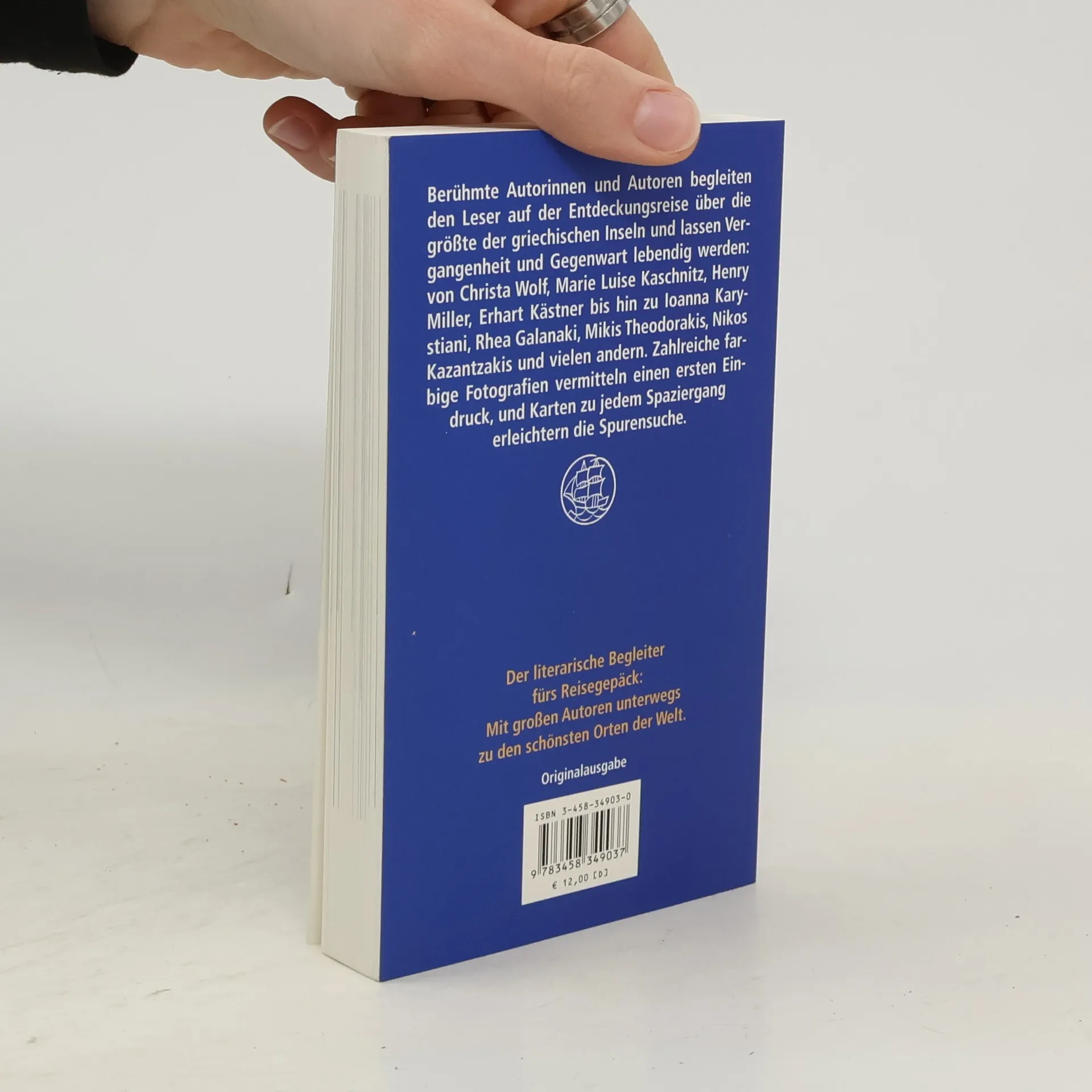 „Kreta – Insel der Mythen und Traditionen: der Raub der Europa, der Minotaurus; das sagenumwobene Knossos und das kretische Labyrinth bergen bis heute Geheimnisse. Die wilde Berglandschaft, die herrlichen Küsten und die verwinkelten Altstädte spiegeln sich in vielen literarischen Texten wider. Der Reisebegleiter Kreta stellt die Städte Chania, Rethymno und Iraklio vor und führt auf den Spuren von Christa Wolf, Marie Luise Kaschnitz, Henry Miller, El Greco, Nikos Kazantzakis, Ioanna Karystiani u. v. a. über die größte griechische Insel.“