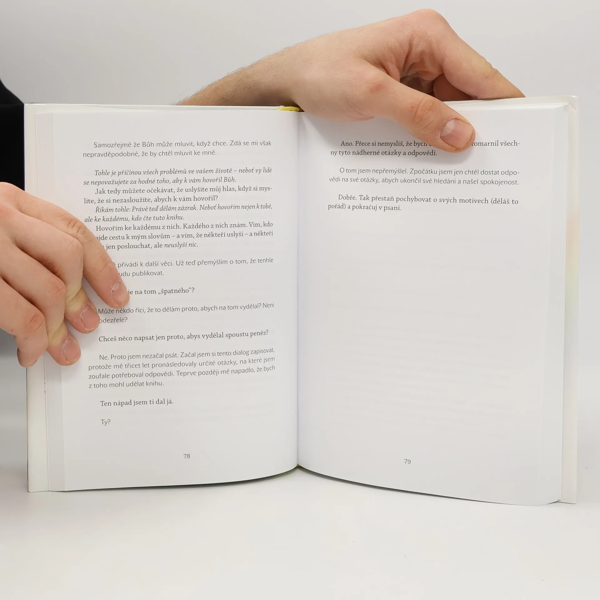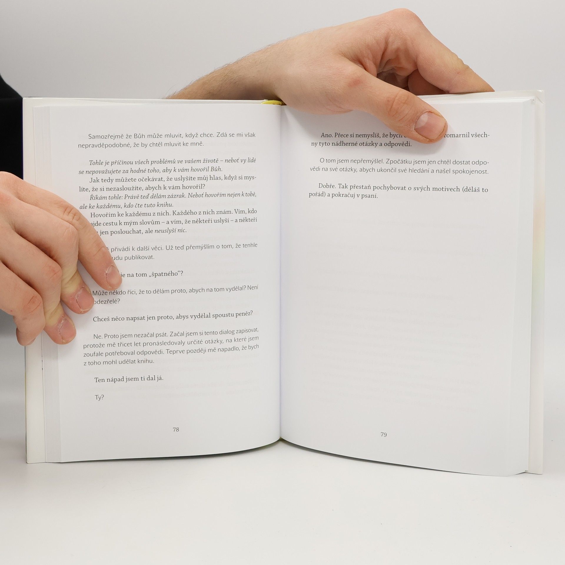 Je neobvyklé hovořit s Bohem, ale autor, hluboce věřící, se toho odvážil a vytvořil inspirující dílo. Kniha se snaží odpovědět na otázky týkající se života, lásky, smyslu existence, lidských vztahů, dobra a zla, viny a hříchu, odpuštění a spásy, a cest k Bohu i do pekla. Pojednává o sexualitě, moci, penězích, manželství, rozvodech, životním poslání, zdraví, posmrtném životě a životě před narozením. Zkoumá také válku a mír, vědění a nevědění, dávání a přijímání, radost a smutek. Autor se zamýšlí nad konkrétním i abstraktním, viditelným i neviditelným, pravdou i nepravdou. Kniha je vnímána jako „poslední Boží slovo“, i když někteří lidé mohou mít pochybnosti, zda Bůh stále hovoří. Autor věří, že Bůh oslovuje každého, ať už je dobrý nebo špatný, a že tento dialog může mít různé podoby. Krátce po začátku svých úvah si uvědomil, že hovoří s Bohem, který mu odpovídá způsobem, jaký je schopen pochopit. Tato skutečnost vysvětluje hovorovou formu knihy a odkazy na materiály z jiných zdrojů a autorovy zkušenosti.