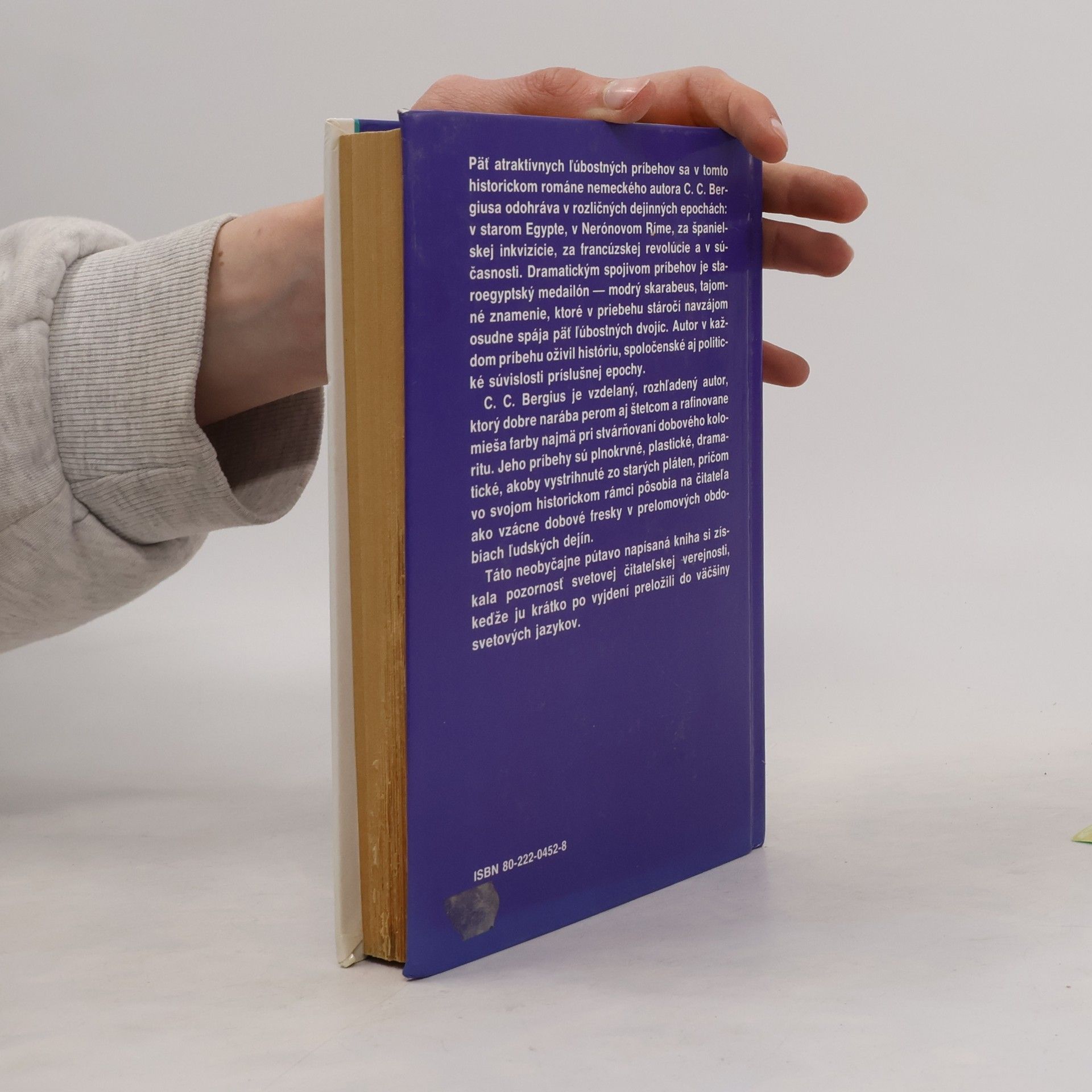 Päť atraktívnych ľúbostných príbehov sa v tomto historickom románe odohráva v rozličných dejinných epochách: v starom Egypte, v Nerónovom Ríme, za španielskej inkvizície, za francúzskej revolúcie a v súčasnosti. Dramatickým spojivom príbehov je staroegyptský medailón - modrý skarabeus, tajomné znamenie ktoré v priebehu stáročí navzájom osudne spája päť ľúbostných dvojíc. Autor v každom príbehu oživil históriu, spoločenské aj politické súvislosti príslušnej epochy.