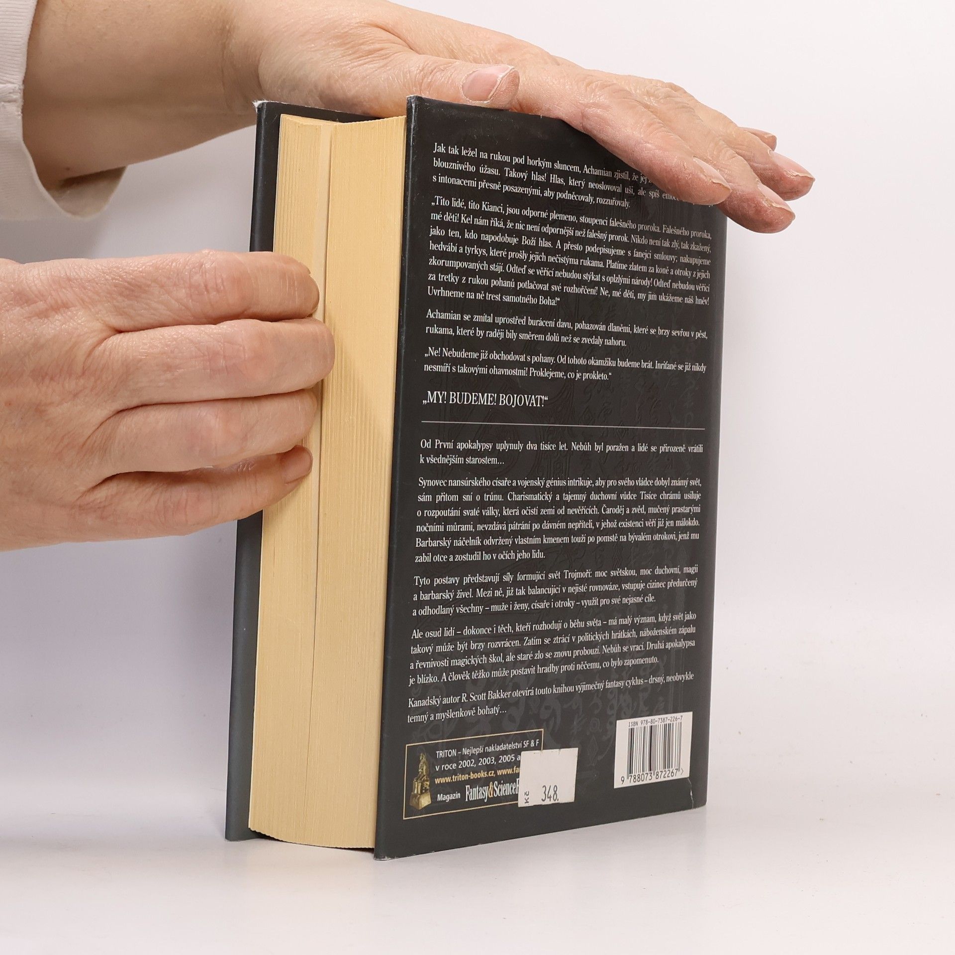 1. kniha série Princ ničeho. Od První apokalypsy uplynuly dva tisíce let. Nebůh byl poražen a lidé se přirozeně vrátili k všednějším starostem… Synovec nansúrského císaře a vojenský génius intrikuje, aby pro svého vládce dobyl známý svět, sám přitom sní o trůnu. Charismatický a tajemný duchovní vůdce Tisíce chrámů usiluje o rozpoutání svaté války, která očistí zemi od nevěřících. Čaroděj a zvěd, mučený prastarými nočními můrami, nevzdává pátrání po dávném nepříteli, v jehož existenci věří již jen málokdo. Barbarský náčelník odvržený vlastním kmenem touží po pomstě na bývalém otrokovi, jenž mu zabil otce a zostudil ho v očích jeho lidu. Tyto postavy představují síly formující svět Trojmoří: moc světskou, moc duchovní, magii a barbarský živel. Mezi ně, již tak balancující v nejisté rovnováze, vstupuje cizinec předurčený a odhodlaný všechny – muže i ženy, císaře i otroky – využít pro své nejasné cíle. Ale osud lidí – dokonce i těch, kteří rozhodují o běhu světa – má malý význam, když svět jako takový může být brzy rozvrácen. Zatím se ztrácí v politických hrátkách, náboženském zápalu a řevnivosti magických škol, ale staré zlo se znovu probouzí. Nebůh se vrací. Druhá apokalypsa je blízko. A člověk těžko může postavit hradby proti něčemu, co bylo zapomenuto. Kanadský autor R. Scott Bakker otevírá touto knihou výjimečný fantasy cyklus – drsný, neobvykle temný a myšlenkově bohatý… Přeložil Petr Kotrle.