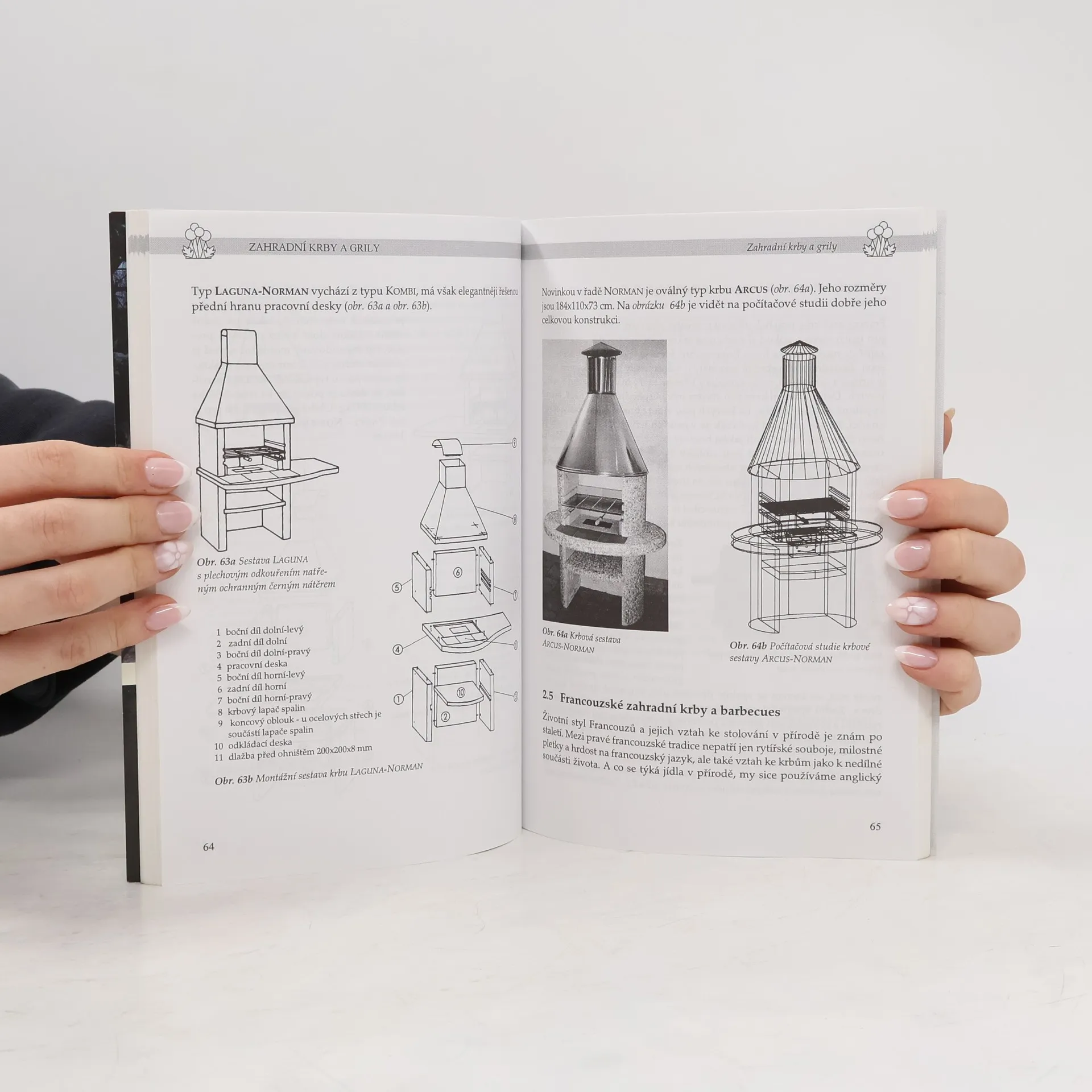 Obsah je rozdělen do šesti kapitol, a k nim jsou přidány dvě přílohy. 1.) Zahrada jako prostor pro rekreaci a setkávání 2.) Zahradní krby a grily 3.) Společenské zahradní krby a sestavy 4.) Krby přistavěné k objektu 5.) Grily na plyn 6.) Udírny Příloha 1: Recepty na grilování Příloha 2: Uzení masa, ryb a drůbeže