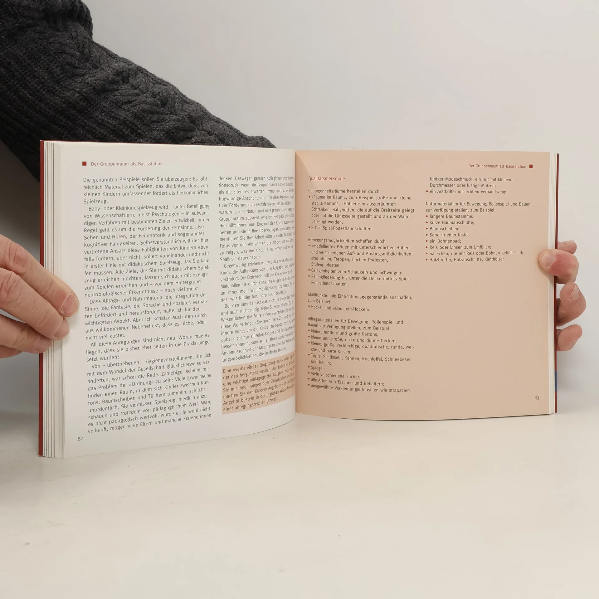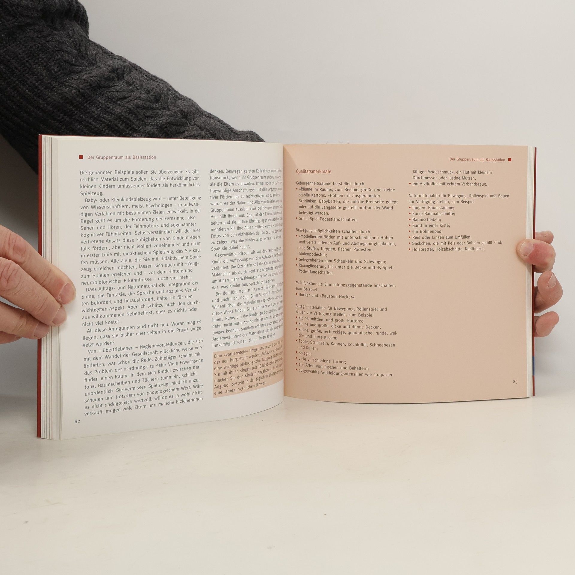 Kinder sind von Natur aus neugierig und bereit, ihre Umwelt zu erkunden. Um dies zu fördern, benötigen sie geeignete Räume und Materialien. Angelika von der Beek bietet in ihrem Werk umfassende Vorschläge zur Gestaltung von Bildungsräumen für Kinder im Alter von drei bis sechs Jahren. Sie stützt sich auf das Hamburger Raumgestaltungskonzept, das sie zusammen mit Matthias Buck und Fachkräften aus Hamburger Kitas entwickelt hat, und vertieft den Bildungsansatz von Gerd E. Schäfer. Die Autorin empfiehlt geeignete Materialien, beschreibt Qualitätskriterien und gibt praktische Tipps für eine Pädagogik, die auf den Ideen von Emmi Pikler, der Reggio-Pädagogik und den Early Excellence Centres basiert. Auf 172 Seiten werden verschiedene Themen behandelt, darunter der Alltag als Lernfeld, der Gruppenraum als Basisstation, Raum für Bewegung und Rückzug, sowie die Entfaltung der Sinne durch Farben, Licht, Akustik und Gerüche. Zudem werden Mini-Ateliers, Materialien zum Experimentieren, sanitäre Räume als Erlebnisräume und viele weitere Aspekte thematisiert. Das Buch bietet Erzieherinnen und Eltern Anregungen und Orientierung für die Gestaltung von Bildungsräumen und Übergängen, verbunden mit theoretischen und praktischen Einblicken in die Kita-Praxis.