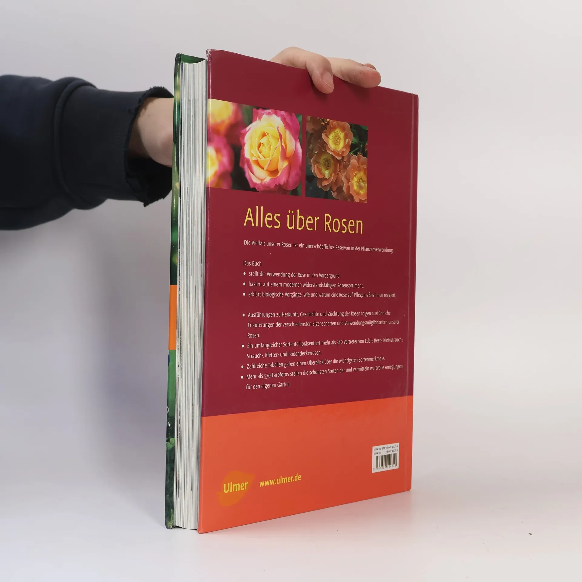 Ein Ulmer Premium Buch für Rosen kaufen, pflanzen, pflegen - umfassendes Wissen für Praktiker. Expertenwissen die besten modernen, pflegeleichten Rosen Ratgeber und Nachschlagewerk Die Kapitel Alles über die Rose, Verwendung, Sortenbeschreibungen und Rosenpraxis leiten den Rosenfreund durch die üppige Blütenwelt der Rosen. Der umfangreiche Sortenteil präsentiert mehr als 400 Vertreter von Edel-, Beet-, Kleinstrauch-, Strauch-, Kletter- und Bodendeckerrosen. Über 550 Farbfotos zeigen die schönsten Sorten und diewichtigsten Handgriffe. Die Verwendungshinweise basieren auf einem modernen pflegeleichten Rosensortiment, das sich durch Gesundheit undRobustheit auszeichnet und gerade für den Anfänger wichtig ist.