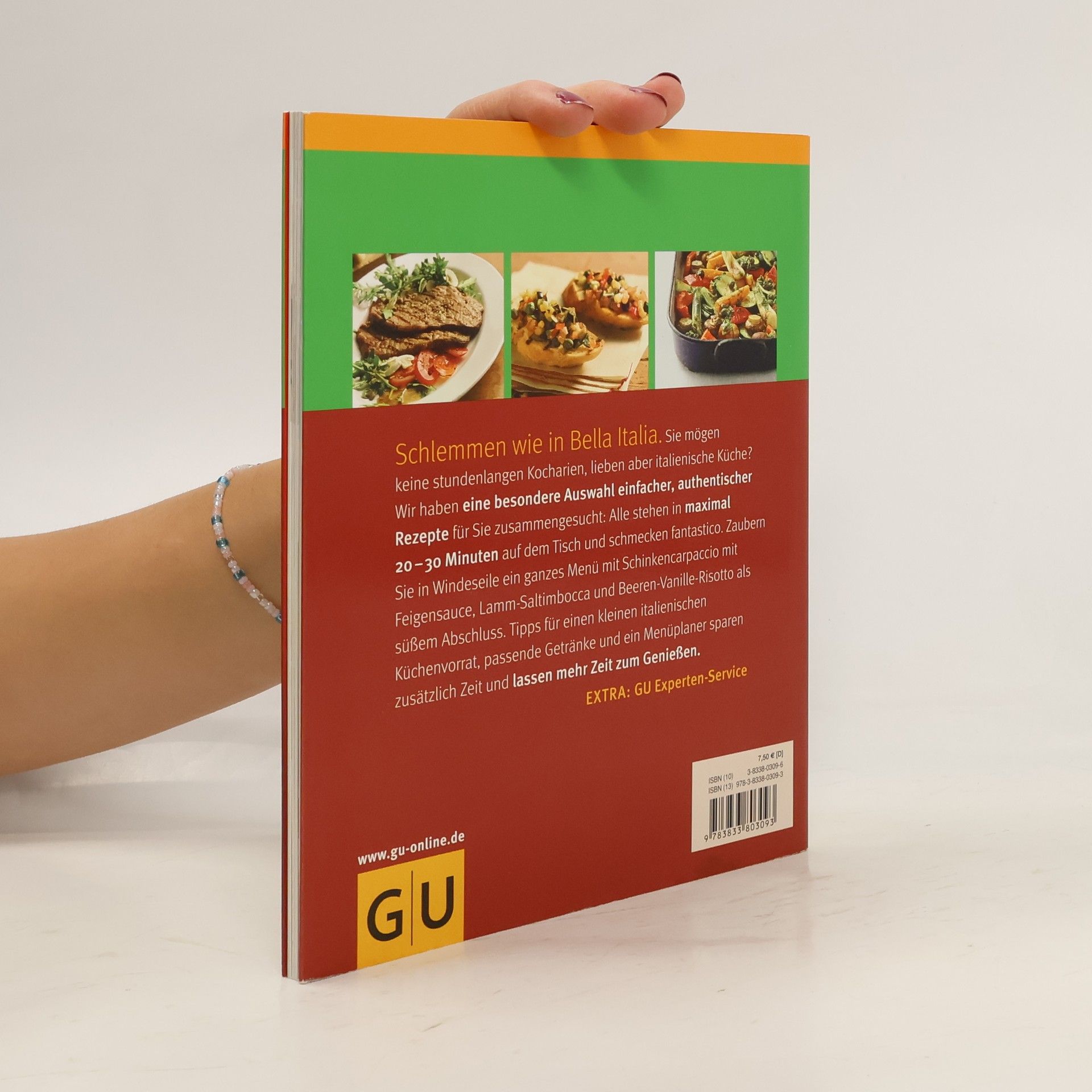 Kochen und genießen wie in Bella Italia - aber bloß nicht so lange am Herd stehen wie Mamma mia. Wer glaubt, dass gute italienische Küche gleichzeitig stundelange Kocharien bedeutet, wird hier eines Besseren belehrt. Um kulinarisch nach Italien zu gelangen, braucht es nicht mehr als 20 bis maximal 30 Minuten. In so kurzer Zeit gelingen alle mit viel Liebe und Sachverstand ausgewählten Rezepte. So lässt sich dann auch gleich ein ganzes Menü für Freunde und die Familie auftischen: Vom edlen Schinkencarpaccio mit Feigensauce über Pasta mit Safranerbsen bis Lamm-Saltimbocca oder Fisch in Kapernbutter mit Beeren-Vanille-Risotto zum krönenden Abschluss. Tipps für den kleinen italienischen Vorrat helfen noch etwas mehr Zeit zu sparen, die sich dann bestens in den Getränktipps und Vorschlägen für italienische Blitzmenüs investieren lässt.