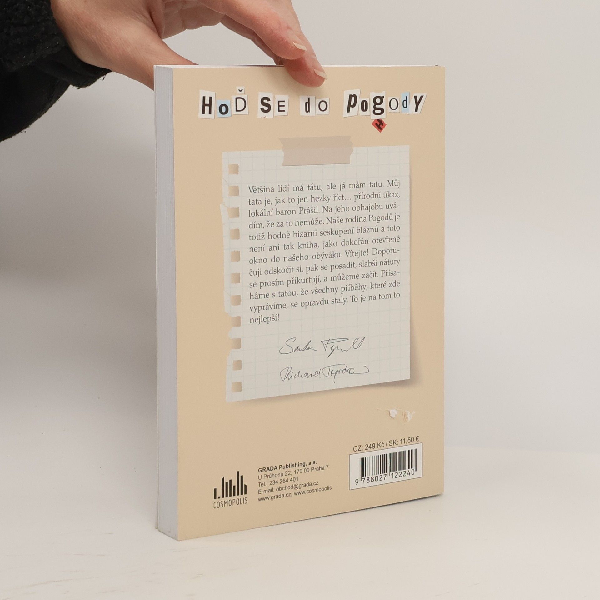 Většina lidí má tátu, ale já mám tatu. Můj tata je, jak to jen hezky říct… přírodní úkaz, lokální baron Prášil. Na jeho obhajobu uvádím, že za to nemůže. Naše rodina Pogodů je totiž hodně bizarní seskupení bláznů a toto není ani tak kniha, jako dokořán otevřené okno do našeho obýváku. Vítejte! Doporučuji odskočit si, pak se posadit, slabší nátury se prosím přikurtují, a můžeme začít. Přísaháme s tatou, že všechny příběhy, které zde vyprávíme se opravdu staly. To je na tom to nejlepší!