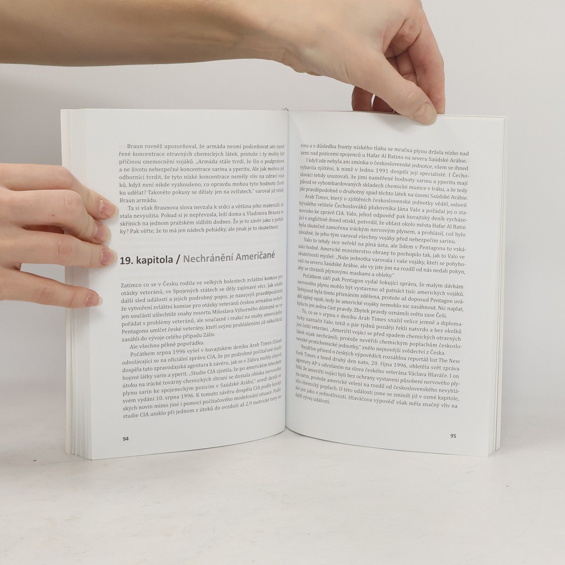 Tématem publikace je rozbor aféry kolem účasti čs. protichemické jednotky na operaci "Pouštní bouře" v roce 1991. V roce 1991 se čs. protichemická jednotka zúčastnila bojových akcí v rámci americko-iráckého konfliktu - operace "Pouštní bouře". Došlo zde ke zjištění výskytu otravných látek, což zanechalo následky na zdravotním stavu zúčastněných vojáků, výjimkou nebyla ani pozdější "náhlá úmrtí". K vyšetření okolností této aféry byla ustavena komise, z jejichž zpráv vycházeli autoři při sestavování publikace (dva z nich byli příslušníky protichemického praporu). Sami autoři označují svoji knihu jako "kontroverzní", lišící se od oficiálních verzí.