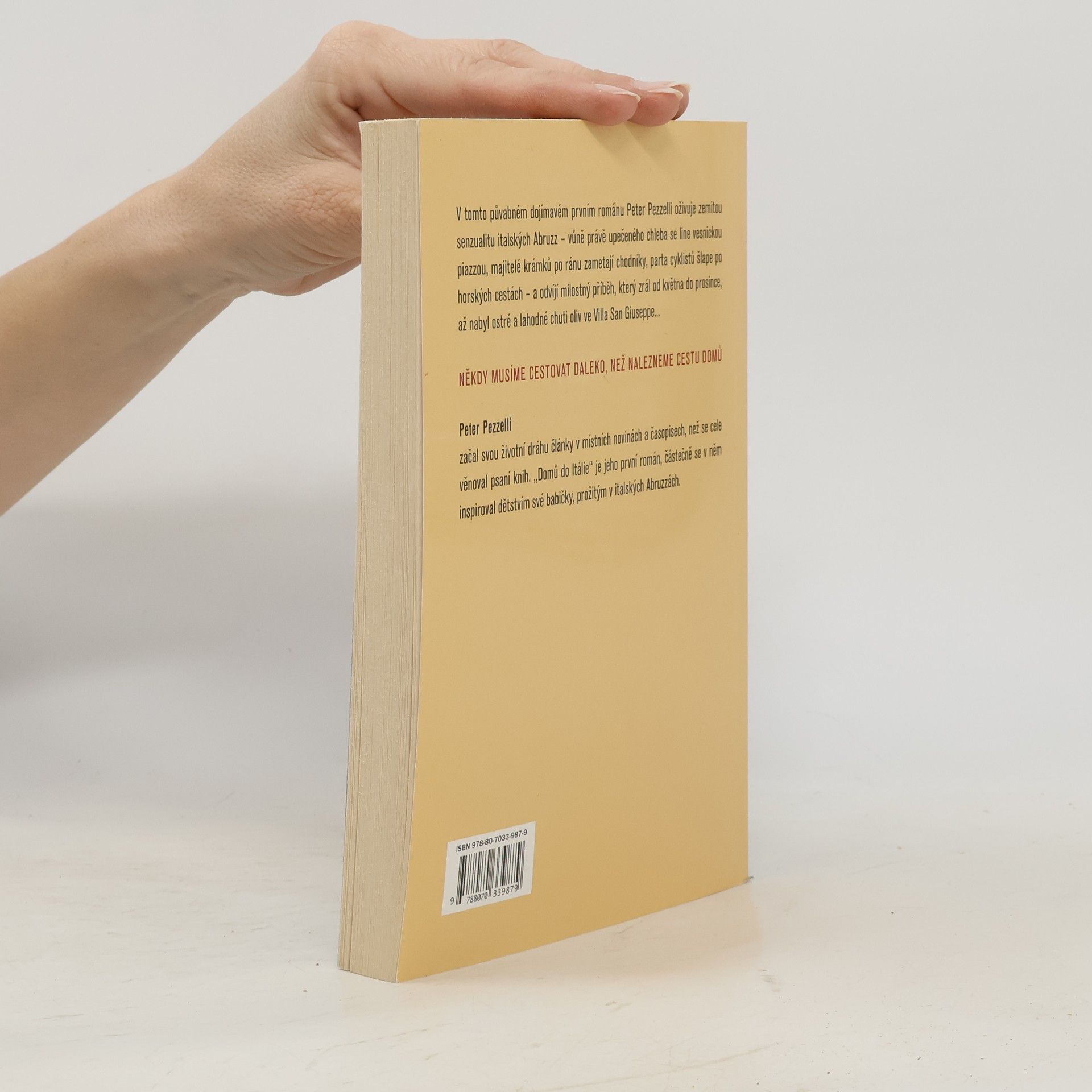 Někdy musíme cestovat daleko, než nalezneme cestu domů. V tomto svém prvním půvabném a dojímavém románu Peter Pezzelli oživuje zemitou senzualitu italských Abruzz – vůně právě upečeného chleba se line vesnickou piazzou, majitelé krámků po ránu zametají chodníky, parta cyklistů šlape po horských cestách – a odvíjí milostný příběh, který zrál od května do prosince, až nabyl ostré a lahodné chuti oliv ve Villa San Giuseppe…