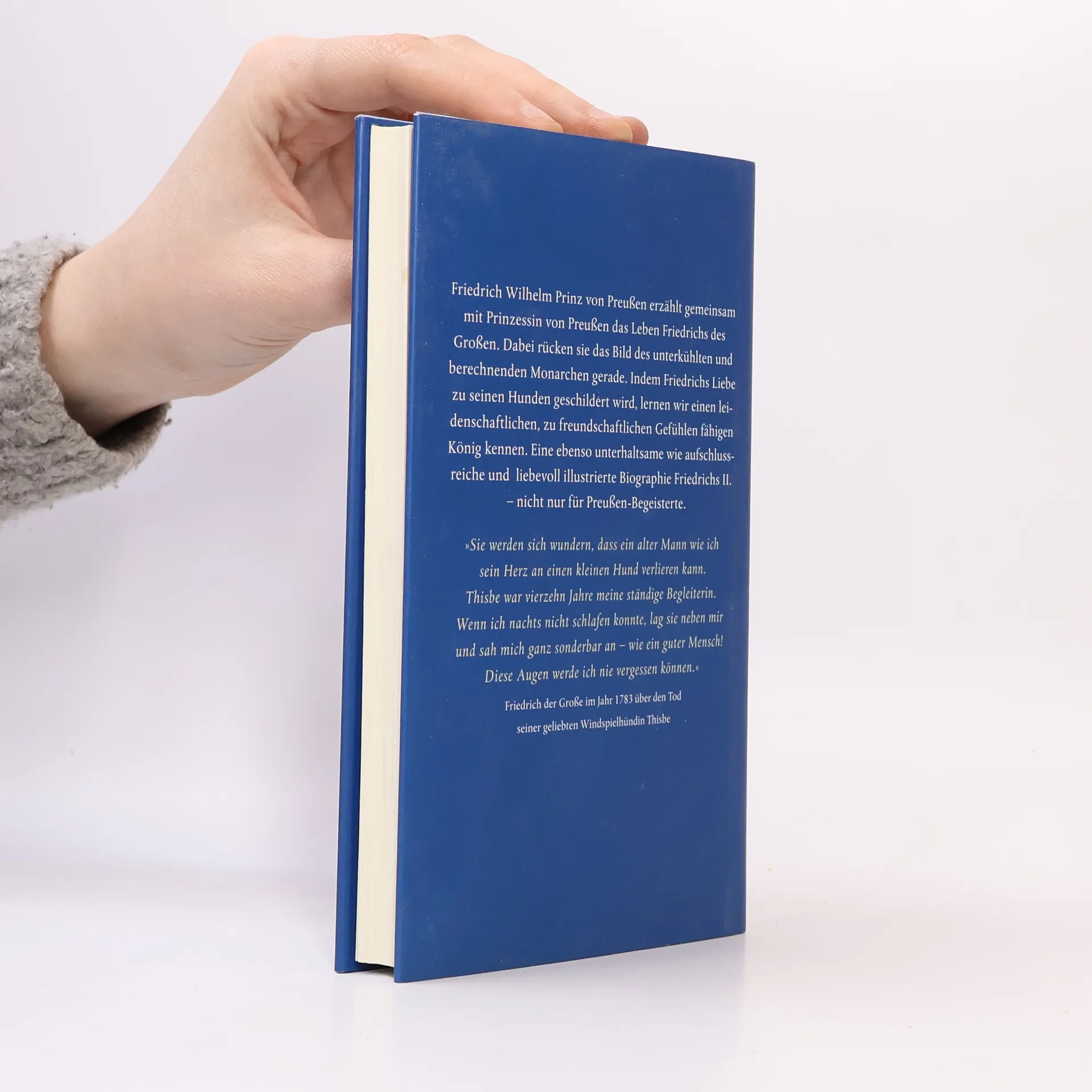 Friedrich Wilhelm Prinz von Preußen und Sibylle Prinzessin von Preußen erzählen das bewegte Leben des Preußenkönigs und zeichnen ein überraschendes Bild des oft als gefühllos und berechnend wahrgenommenen Monarchen. Besonders betont wird Friedrichs Liebe zu seinen Hunden, die ihn als leidenschaftlichen und freundschaftlichen König zeigen. Am 17. August 1786, in seinen letzten Stunden, galt seine Aufmerksamkeit seinen geliebten Windspielen. Seine letzten Worte, als er bemerkte, dass sein Lieblingshund fror, waren: „Deckt ihn mit einem Kissen zu.“ Die Autoren, Nachfahren Friedrichs des Großen, enthüllen amüsante Anekdoten und tragische Szenen aus seinem Privatleben, das stark von seiner Hundenarrheit geprägt war. Sie präsentieren eine authentische Biographie, die aktuelle Forschungsergebnisse einbezieht. Das Buch bietet eine unterhaltsame, aufschlussreiche und liebevoll illustrierte Lebensgeschichte des großen Königs und zeigt eine andere Perspektive auf Friedrich II.