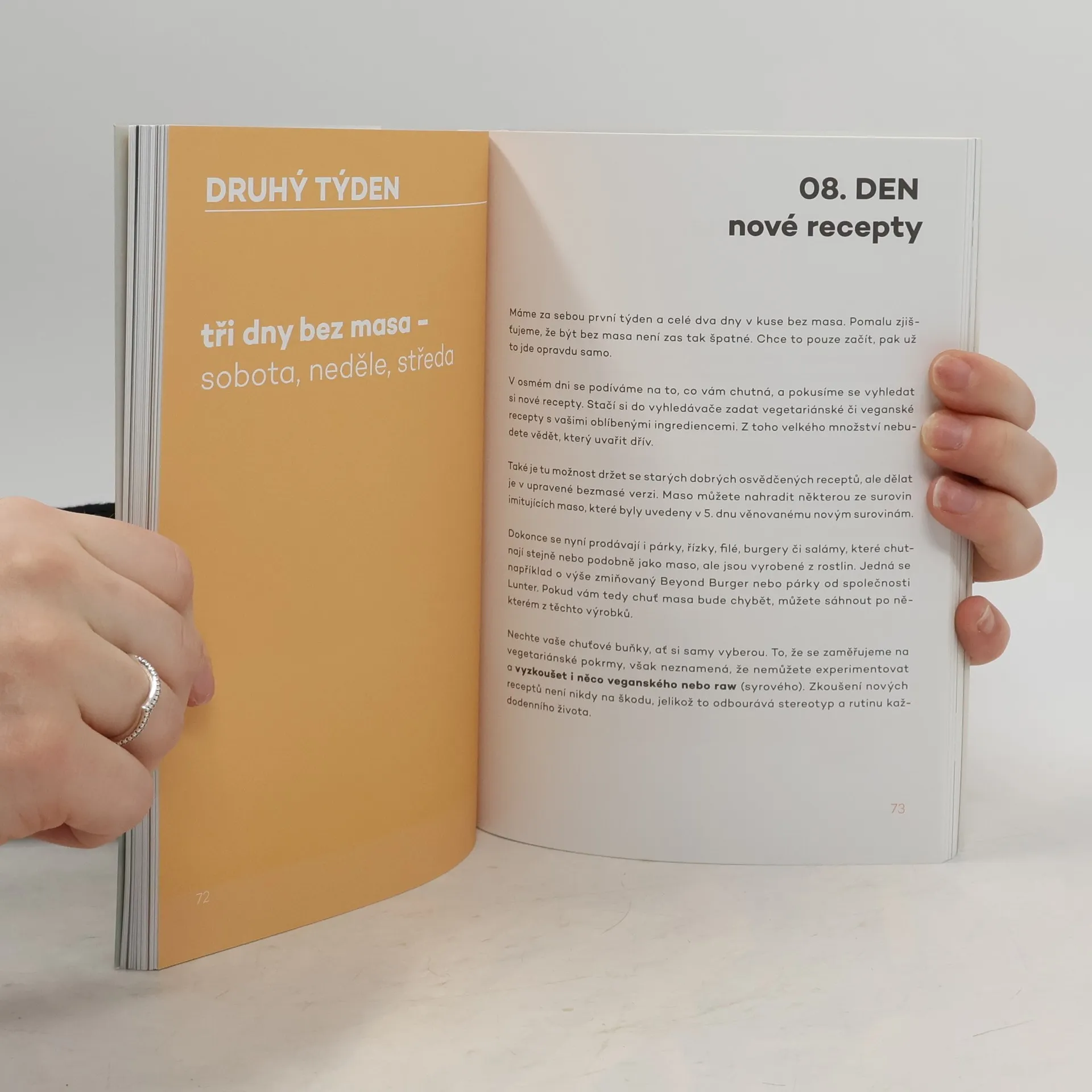 Je těžké učinit ono prvotní rozhodnutí vzdát se masa. Jako většina změn i tato s sebou přináší určitý strach, obavy i potíže, které se na bezmasé cestě mohou objevit. Tato prvotina podává ucelený přehled informací, které povedou čtenáře ke změně jak jeho celkového pohledu na ostatní živé tvory, tak i jeho naučených stravovacích návyků, které se jen slepě řídí tradicí a zvykem. Jedná se o 28denní plán, díky kterému v sobě člověk objeví společenskou odvahu a připraví se i na případné překážky. Kniha nabízí kromě bezmasých receptů i fakta a mýty o mase a spoustu užitečných tipů.