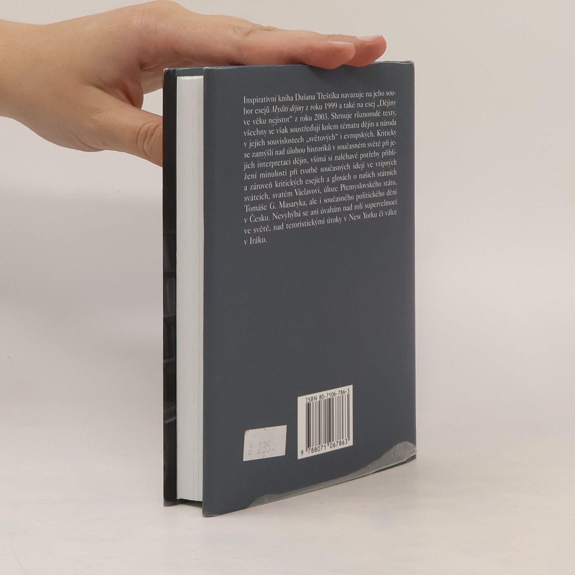 Inspirativní kniha Dušana Třeštíka shrnuje různorodé texty, všechny se však soustřeďují kolem tématu dějin a národa v jejich souvislostech „světových" i evropských. Kriticky se zamýšlí nad úlohou historiků v současném světě při jejich interpretaci dějin, všímá si naléhavé potřeby přiblížení minulosti při tvorbě současných idejí ve vtipných a zároveň kritických esejích a glosách o našich státních svátcích, svatém Václavovi, úloze Přemyslovského státu, Tomáše G. Masaryka, ale i současného politického dění v Česku. Nevyhýbá se ani úvahám nad rolí supervelmocí ve světě, nad teroristickými útoky v New Yorku či válce v Iráku.