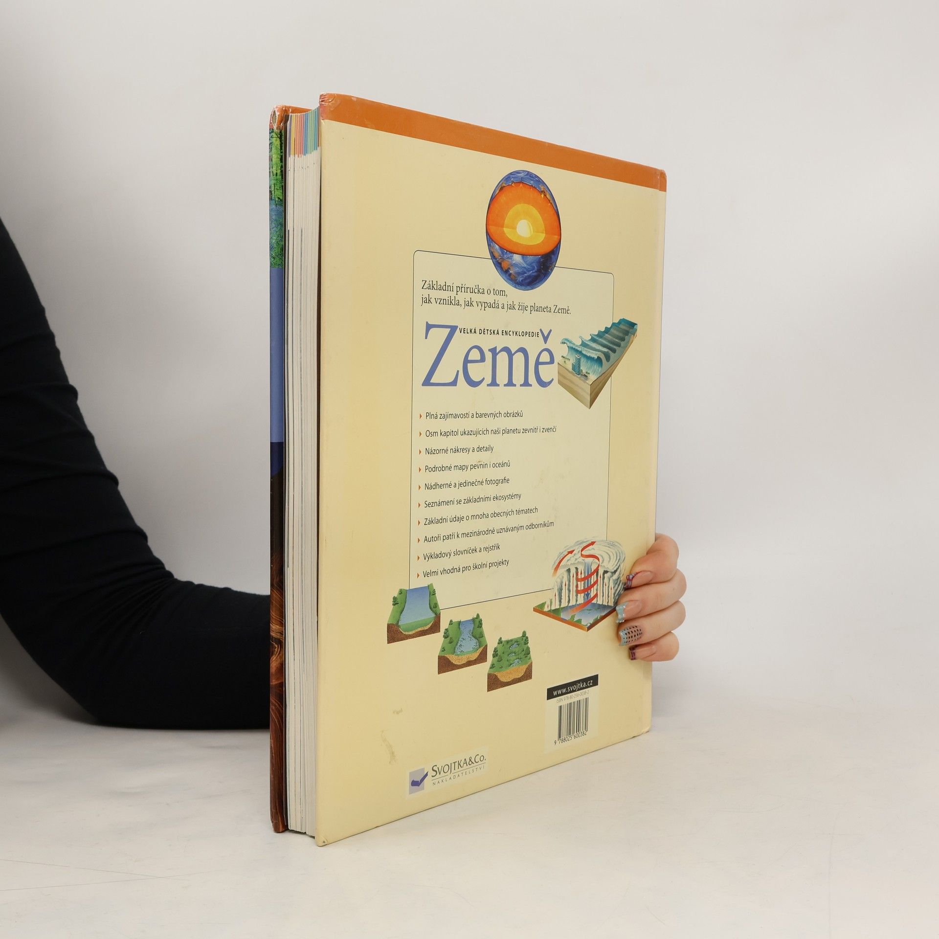 Tato velká dětská encyklopedie je základní příručkou o tom, jak vznikla, jak vypadá a jak žije planeta Země. Osm kapitol ukazuje naši planetu zevnitř i zvenčí. Kniha je plná zajímavostí, barevných obrázků a obsahuje nádherné nákresy, detaily, podrobné mapy pevnin a oceánů i jedinečné fotografie. Seznamuje se základními ekosystémy, obsahuje základní údaje o mnoha obecných tématech i výkladový slovníček a rejstřík. Je vhodná pro školní projekty i domácí studium.