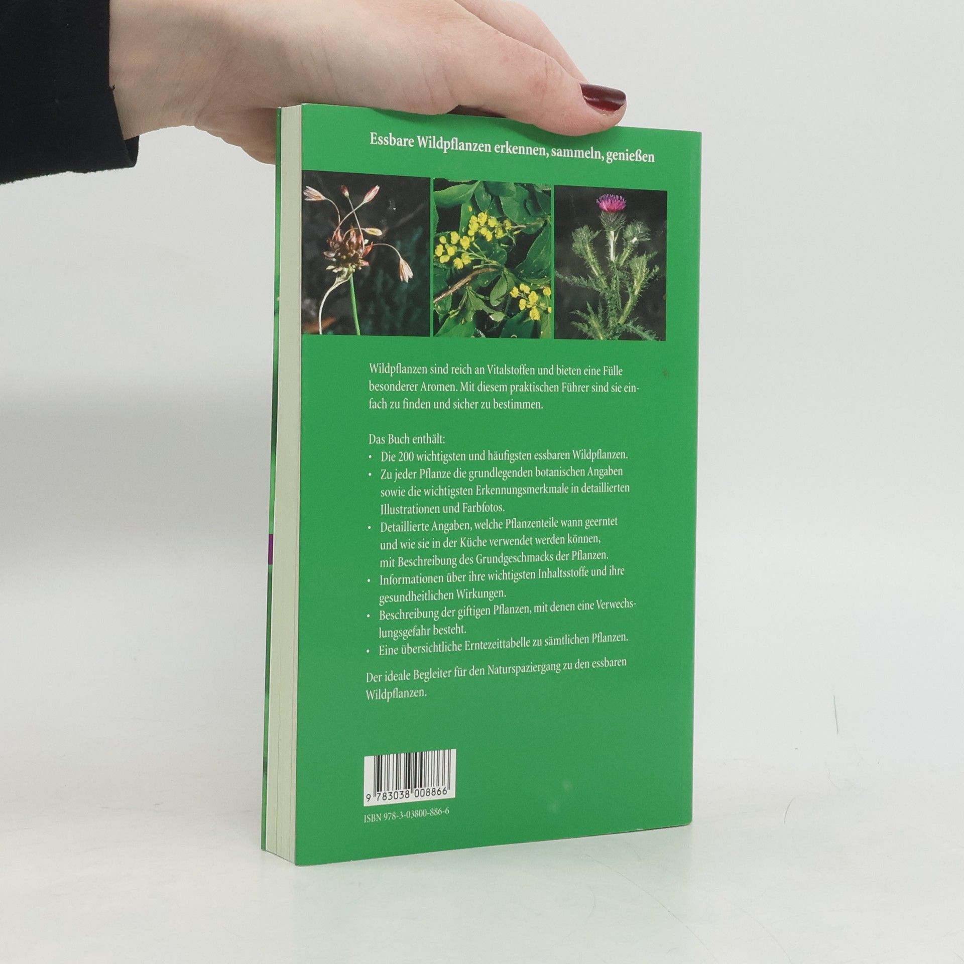 Wildpflanzen sind reich an Vitalstoffen und bieten eine Fülle besonderer Aromen. Mit diesem praktischen Führer sind sie einfach zu finden und sicher zu bestimmen. Das Buch enthält: - Die 200 wichtigsten und häufigsten essbaren Wildpflanzen. - Zu jeder Pflanze die grundlegenden botanischen Angaben sowie die wichtigsten Erkennungsmerkmale in detaillierten Illustrationen und Farbfotos. - Detallierte Angaben, welche Pflanzenteile wann geerntet und wie sie in der Küche verwendet werden können. - Informationen über ihre wichtigsten Inhaltsstoffe und ihre gesundheitlichen Wirkungen. - Beschreibung der giftigen Pflanzen, mit denen eine Verwechslungsgefahr besteht. - Eine übersichtliche Erntezeittabelle zu sämtlichen Pflanzen.