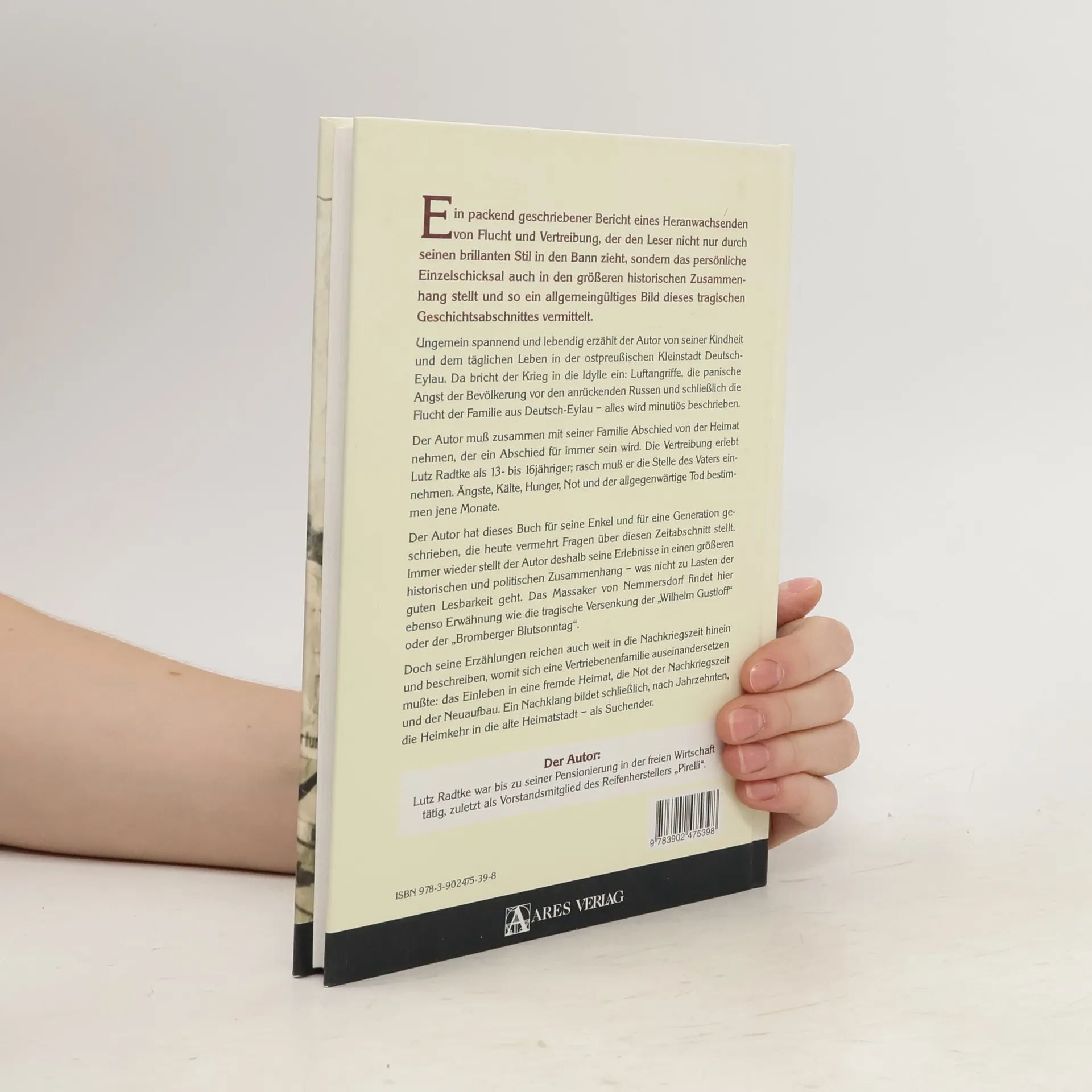Ein packend geschriebener Bericht eines Halbwüchsigen von Flucht und Vertreibung zieht den Leser durch seinen brillanten Stil in den Bann und stellt das persönliche Schicksal in einen größeren historischen Kontext. Spannend und lebendig erzählt der Autor von seiner Kindheit in der ostpreußischen Stadt Deutsch-Eylau, bis der Krieg die Idylle zerstört: Luftangriffe, panische Angst vor den anrückenden Russen und schließlich die Flucht der Familie werden minutiös beschrieben. Der Abschied von der Heimat wird für den Autor, der zwischen 13 und 16 Jahren alt ist, ein endgültiger. In dieser Zeit muss er die Rolle des Vaters übernehmen und erlebt Ängste, Kälte, Hunger und den allgegenwärtigen Tod. Geschrieben für seine Enkel und eine Generation, die Fragen über diese Zeit stellt, verknüpft der Autor seine Erlebnisse mit historischen und politischen Zusammenhängen, ohne die Lesbarkeit zu verlieren. Er erwähnt das Massaker von Nemmersdorf, die Versenkung der „Wilhelm Gustloff“ und den „Bromberger Blutsonntag“. Seine Erzählungen reichen bis in die Nachkriegszeit und schildern die Herausforderungen einer Vertriebenenfamilie: das Einleben in eine fremde Heimat, die Not der Nachkriegszeit und den Neuaufbau. Schließlich bildet die Rückkehr in die alte Heimatstadt nach Jahrzehnten einen nachklingenden Abschluss.