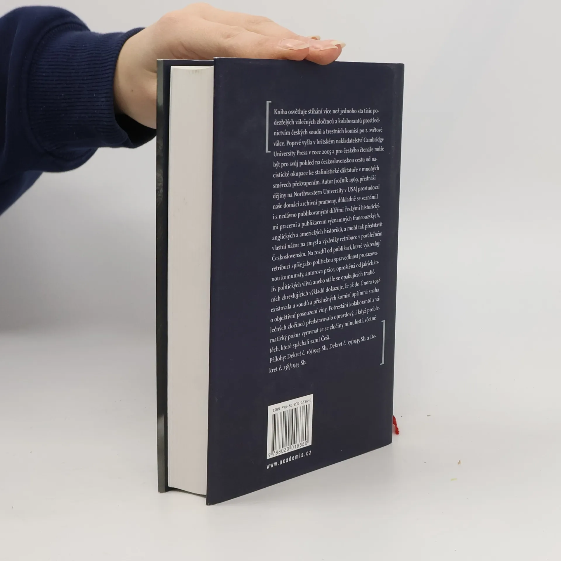 Podtitul: retribuce v poválečném Československu Kniha osvětluje stíhání více než jednoho sta tisíc podezřelých válečných zločinců a kolaborantů prostřednictvím českých soudů a trestních komisí po 2.světové válce. Pro českého čtenáře může být pro svůj pohled na československou cestu od nacistické okupace ke stalinské diktatuře v mnohých směrech překvapením. Na rozdíl od publikací, které vykreslují retribuci spíše jako politickou spravedlnost prosazovanou komunisty, autorova práce, oproštěná od jakýchkoliv politických vlivů anebo stále se opakujících tradičních zkreslujících výkladů, je dokladem, že až do Února 1948 existovala u soudů a příslušných komisí upřímná snaha o objektivní posouzení viny. Potrestání kolaborantů a válečných zločinců představovalo opravdový, i když problematický pokus vyrovnat se se zločiny minulosti, včetně těch, které spáchali sami Češi.