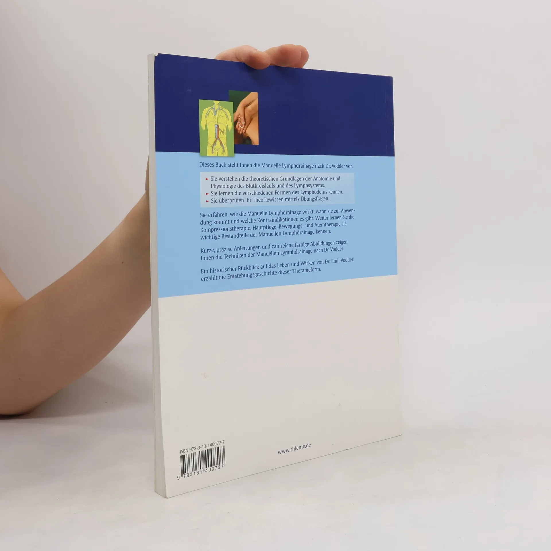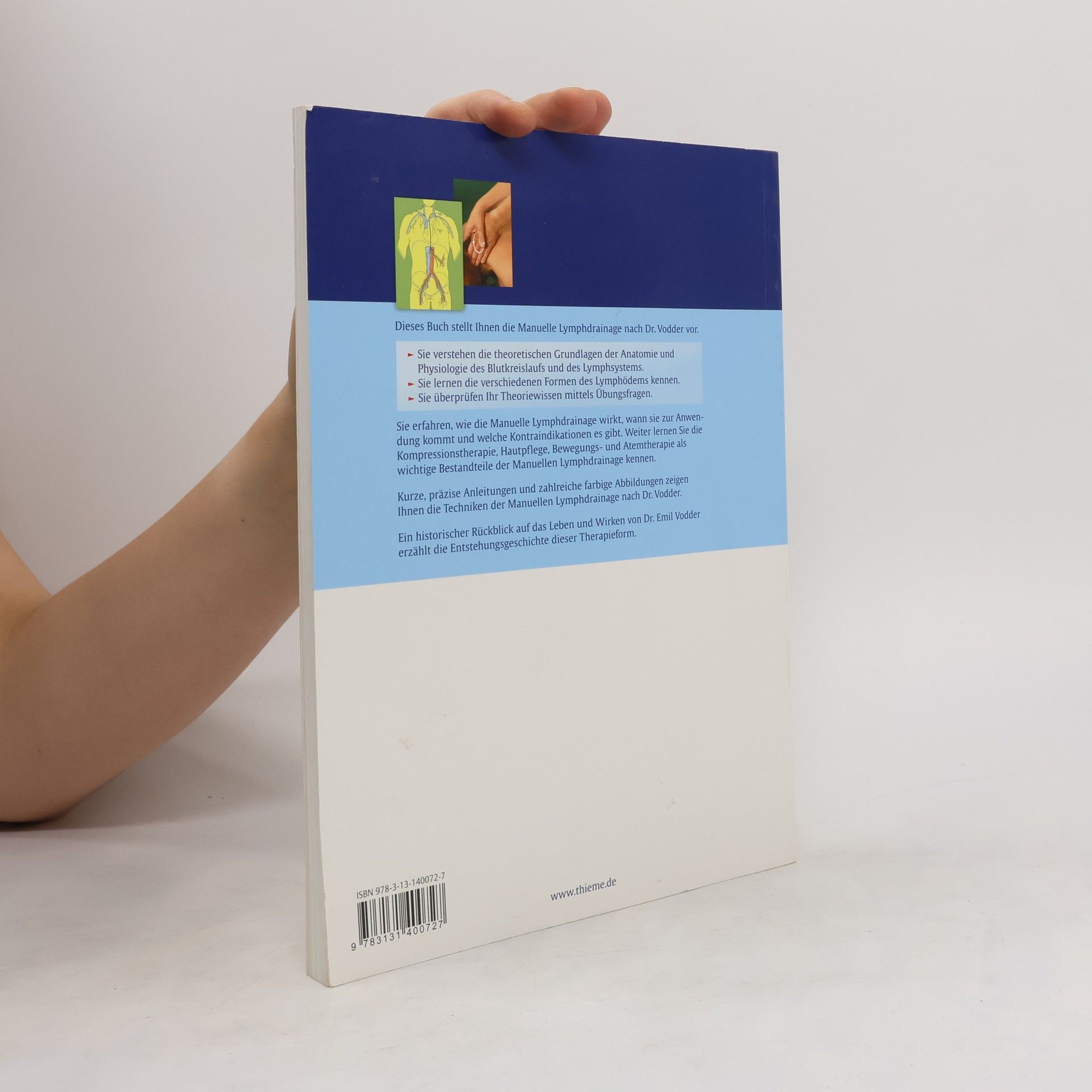 Sie erfahren, wie die Manuelle Lymphdrainage wirkt, wann sie zur Anwendung kommt und welche Kontraindikationen es gibt. Weiter lernen Sie die Kompressionstherapie, Hautpflege, Bewegungs- und Atemtherapie als wichtige Bestandteile der kombinierten physikalischen Entstauungstherapie kennen. Kurze, präzise Anleitungen und zahlreiche farbige Abbildungen zeigen Ihnen die Griffe der Manuellen Lymphdrainage nach Dr. Vodder. Ein historischer Rückblick auf das Leben und Wirken von Dr. Emil Vodder erzählt die Entstehungsgeschichte dieser Therapieform.