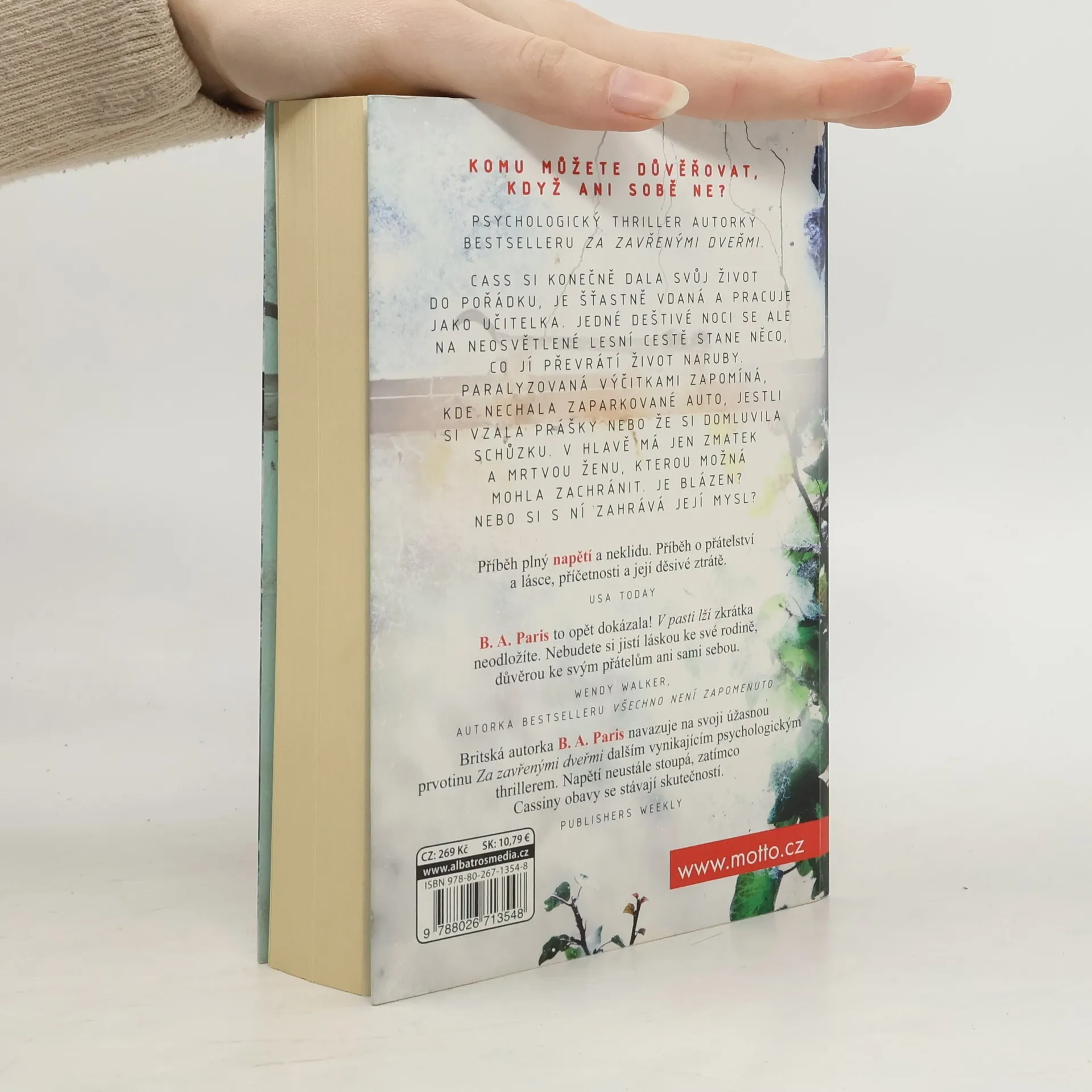 Neměla to dělat, vážně neměla. Aby si zkrátila cestu, vydala se Cass autem domů po neosvětlené, křivolaké a opuštěné cestě lesem. Venku navíc zuřila bouřka a ona v tom psím počasí uviděla na kraji cesty auto, v němž seděla jakási žena. Zastavila kousek před ní a počkala, jestli nevystoupí, aby si řekla o pomoc. Když se nic nedělo, vyrazila k domovu, přece po ní nikdo nemůže chtít, aby vylezla z auta na déšť! Druhý den zjistila, že právě tam, kudy jela, byla nalezena mrtvá žena v autě. Zavražděná žena. Mohla ji zachránit? Nebo už byla mrtvá? A co kdyby byla na jejím místě ona sama? Manžel by se zlobil, kdyby věděl, že tamtudy jela… A tak nikomu nic neřekla. Od té doby se jí ale začnou dít divné věci: zapomíná, kde nechala stát auto, jestli si vzala prášky, dokonce objedná kočárek, i když nemá dítě. V hlavě má jen tu mrtvou ženu a zmatek. Cítí velkou vinu, že se ji nepokusila zachránit. A také to, že ji někdo sleduje…
