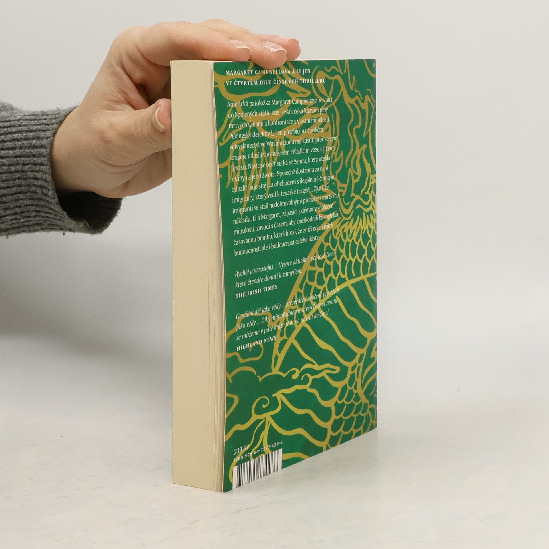 Margaret Campbellová a Li Jen ve čtvrtém díle čínských thrillerů. Americká patoložka Margaret Campbellová se vrací do Spojených států, kde ji však čeká kamion plný mrtvých Číňanů a konfrontace s vlastní minulostí. Pekingský detektiv Li Jen působící na čínském velvyslanectví ve Washingtonu má zjistit, proč se jeho krajané udusili v uzavřeném chladicím voze v jižním Texasu. Navíc se opět setká se ženou, která utekla z Číny i z jeho života. Společně dostanou za úkol odhalit, kdo stojí za obchodem s ilegálními čínskými imigranty, který vedl k texaské tragédii. Zjistí, že imigranti se stali nedobrovolnými přenašeči smrticího nákladu. Li a Margaret, zápasící s démony společné minulosti, závodí s časem, aby zneškodnili biologickou časovanou bombu, která hrozí, že zničí nejen jejich budoucnost, ale i budoucnost celého lidstva.