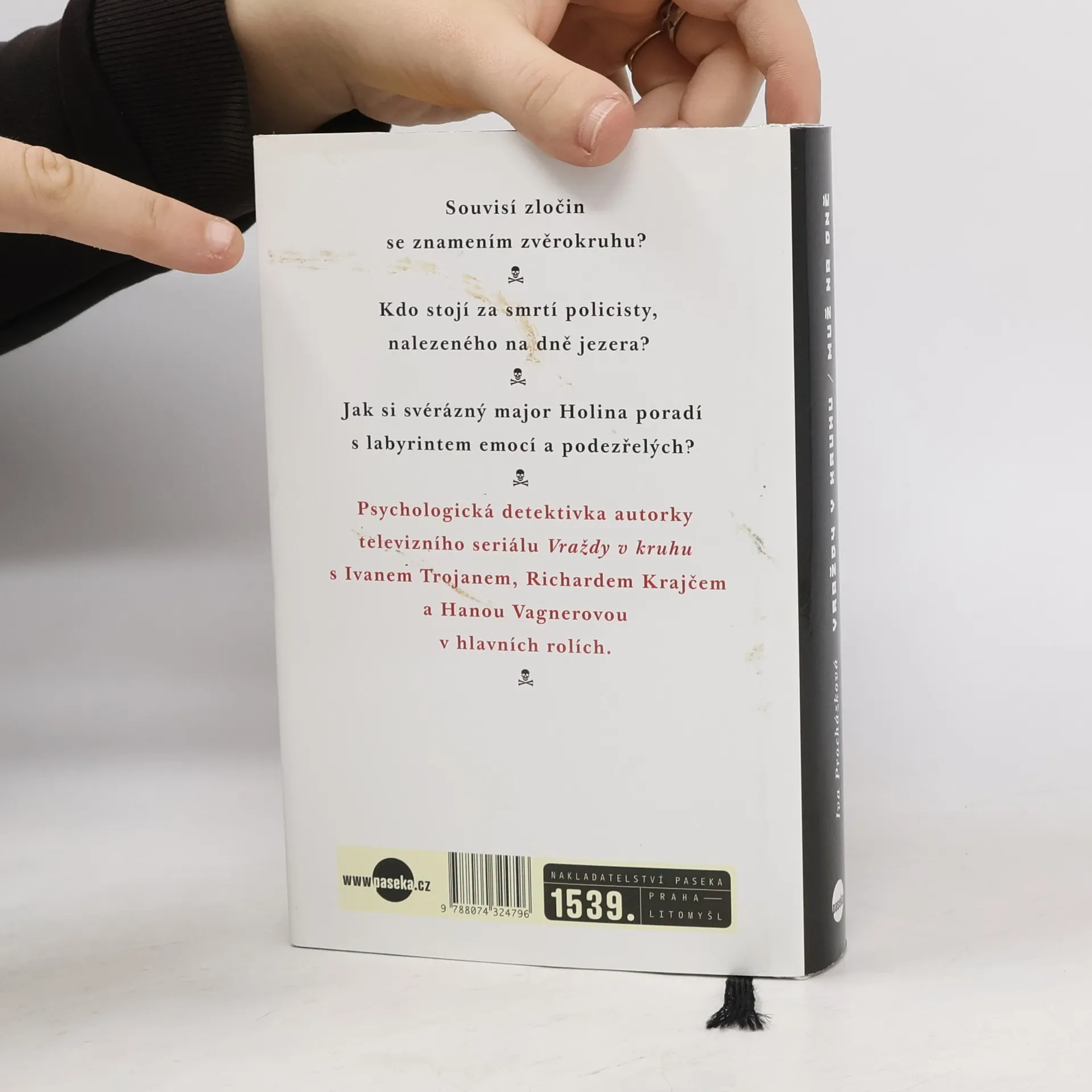 Kolik motivů může mít jedna vražda? Kolem mrtvého z jezera se vynoří plejáda svérázných osob: od pěstitele konopí přes renomovaného architekta, promiskuitního policistu až po tajemnou Kubánku. S neortodoxním kriminalistou Holinou se budeme prodírat labyrintem vyšetřování a přitom nahlédneme hluboko do životů propojených pletivem silných emocí a rozporuplných činů. Kriminální román Ivy Procházkové je předehrou seriálu Vraždy v kruhu s Ivanem Trojanem, Richardem Krajčem a Hanou Vagnerovou v hlavních rolích, jehož vysílání chystá Česká televize od ledna 2015. V románu poznáváme hrdiny s časovým předstihem dvou let, sledujeme začátky jejich vztahů, jsme u samých kořenů jejich pozdějších televizních osudů.