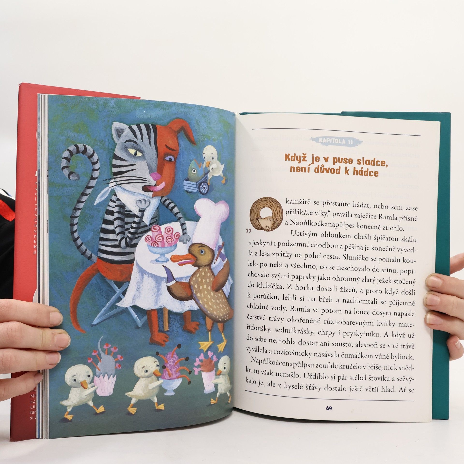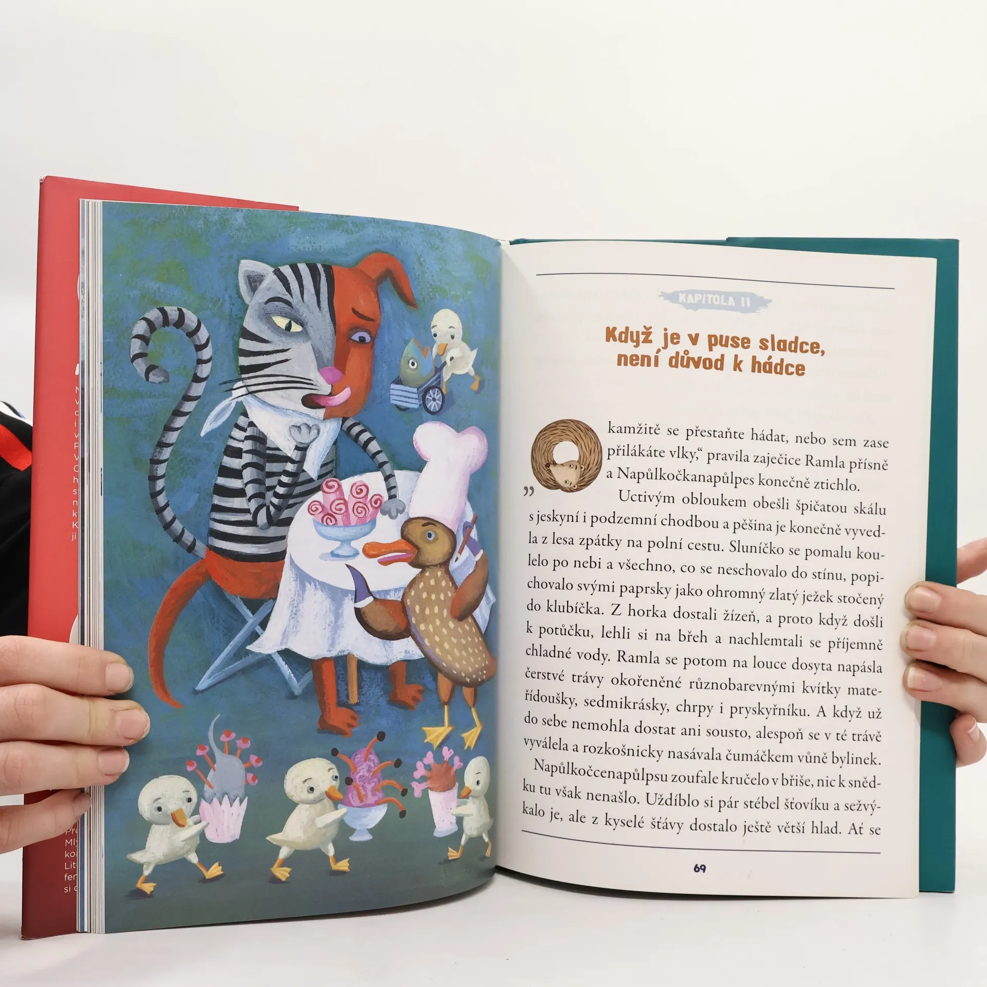 Kožíšek má napůl mourovatý, napůl hnědorezavý. Přední tlapky kočičí a zadní psí. Na zadečku dva ocásky a na hlavě jedno ucho vztyčené a druhé visící. Kdo je to? Přece Napůlkočkanapůlpes - netradiční hrdina pohádky, která pobaví děti i dospělé. Vydejte se s Napůlkočkounapůlpsem a zaječicí Ramlou na cestu za kouzelníkem Abrakadrnožkou a zažijte jelení svatbu nebo útěk před vlky. Zvládnete rozluštit hádanku Sfingy? Potkáte i permoníky a létající klobouky a mnoho dalších tvorů. Naučí se kočka se psem respektu a spolupráci? Vrátí se jim původní podoba? Začtěte se a zjistíte sami.