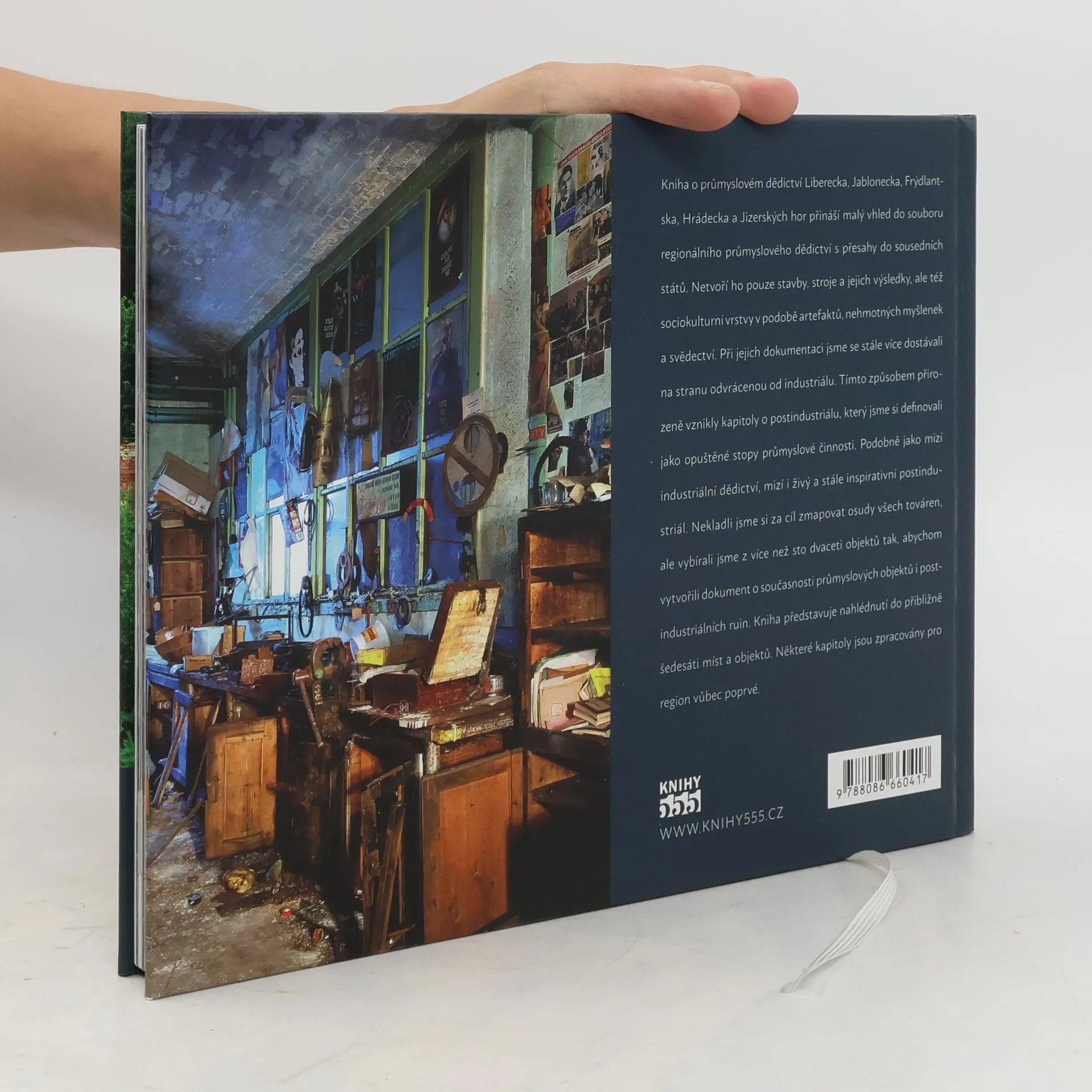 Kniha o průmyslovém dědictví Liberecka, Jablonecka, Frýdlantska, Hrádecka a Jizerských hor přináší malý vhled do souboru regionálního průmyslového dědictví s přesahy do sousedních států. Netvoří ho pouze stavby, stroje a jejich výsledky, ale též sociokulturní vrstvy v podobě artefaktů, nehmotných myšlenek a svědectví. Při jejich dokumentaci jsme se stále více dostávali na stranu odvrácenou od industriálu. Tímto způsobem přirozeně vznikly kapitoly o postindustriálu, který jsme si definovali jako opuštěné stopy průmyslové činnosti. Podobně jako mizí industriální dědictví, mizí i živý a stále inspirativní postindustriál. Nekladli jsme si za cíl zmapovat osudy všech továren, ale vybírali jsme z více než sto dvaceti objektů tak, abychom vytvořili dokument o současnosti průmyslových objektů i postindustriálních ruin. Kniha představuje nahlédnutí do přibližně šedesáti míst a objektů. Některé kapitoly jsou zpracovány pro region vůbec poprvé.