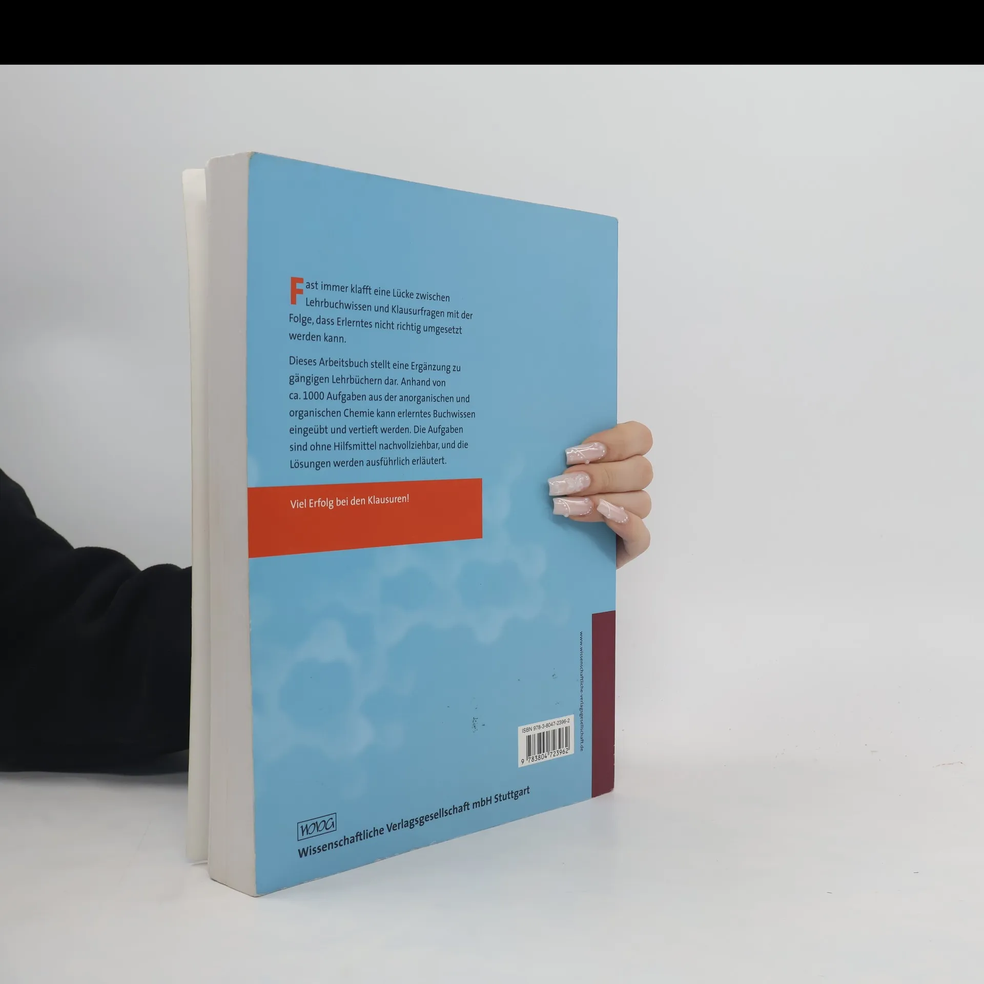 Fast immer klafft eine Lücke zwischen Lehrbuchwissen und Klausurfragen mit der Folge, dass Erlerntes nicht richtig umgesetzt werden kann. Dieses Lehrbuch stellt eine Ergänzung zu gängigen Lehrbüchern dar. Anhand von ca. 1.000 Aufgaben aus der anorganischen und organischen Chemie kann erlerntes Buchwissen eingeübt und vertieft werden. Die Aufgaben sind ohne Hilfsmittel nachvollziehbar, und die Lösungen werden ausführlich erläutert.