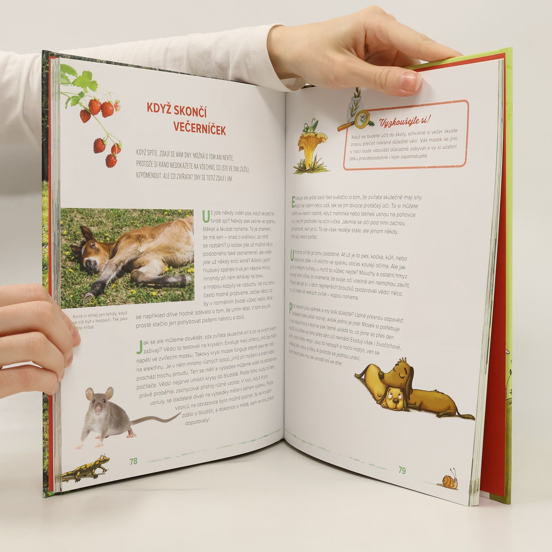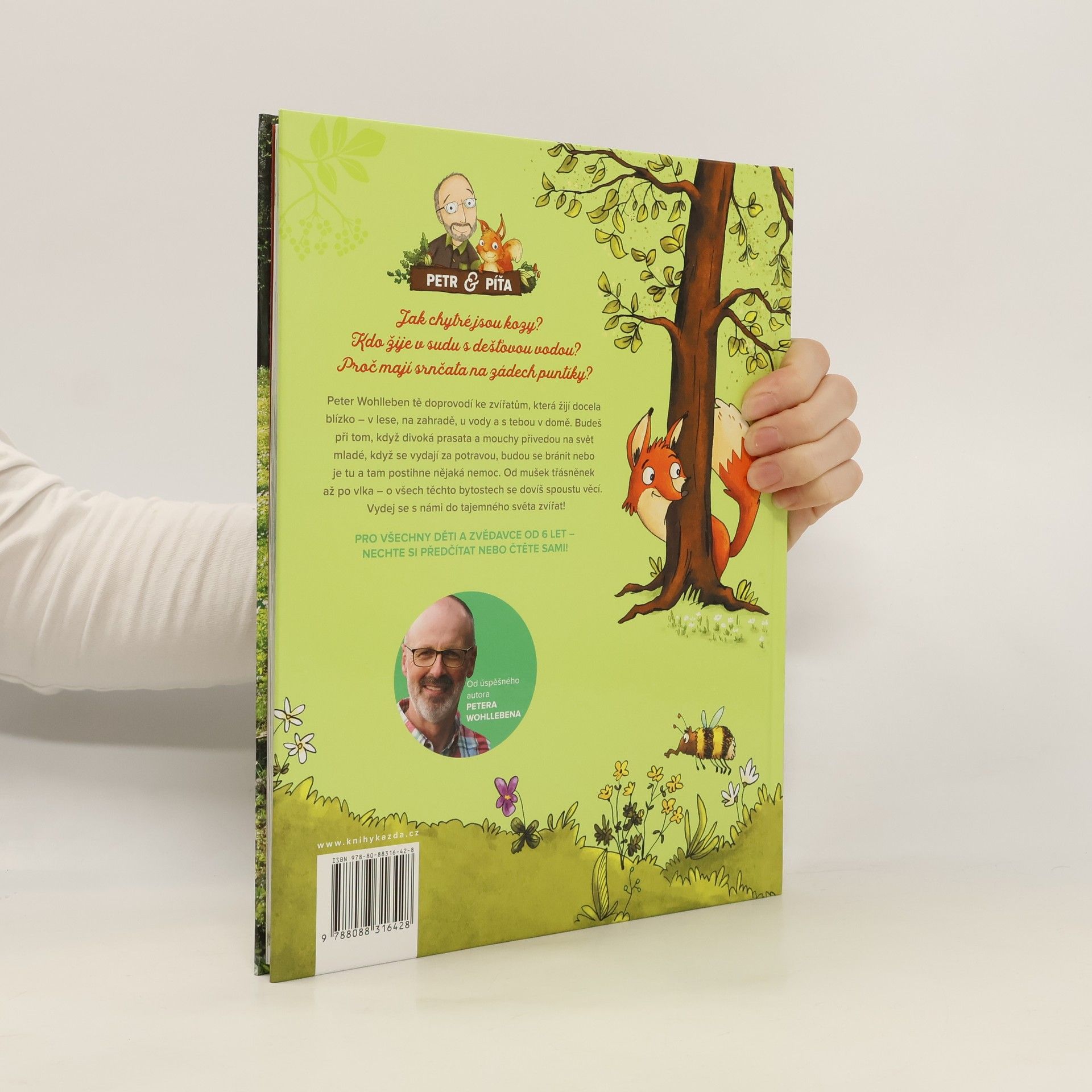 Ve své nejnovější knížce pro děti se Peter Wohlleben, autor řady úspěšných knih o lese, tentokrát věnuje zvířatům. Známý lesník doprovodí malé čtenáře ke zvířatům, která žijí docela blízko – v lese, na zahradě, u vody a s námi v domě. Budou při tom, když divoká prasata a mouchy přivedou na svět mladé, když se vydají za potravou, budou se bránit nebo je tu a tam postihne nějaká nemoc. Od mušek třásněnek až po vlka – o všech těchto bytostech se děti dozví spoustu zajímavých věcí. Vydejte se s námi do tajemného světa zvířat! Znáte odpovědi na tyto otázky? Jak chytré jsou kozy? Kdo žije v sudu s dešťovou vodou? Proč mají srnčata na zádech puntíky? Knížka je, stejně jako autorův bestseller Slyšíš, jak mluví stromy? doplněna nádhernými ilustracemi Stefanie Reich a fotografiemi Jense Steingässera. Knížka je určená dětem od šesti let, ale vzhledem ke krásným ilustracím a nenáročným textům si knížku oblíbí i mladší a příjemně překvapí i rodiče či prarodiče.
