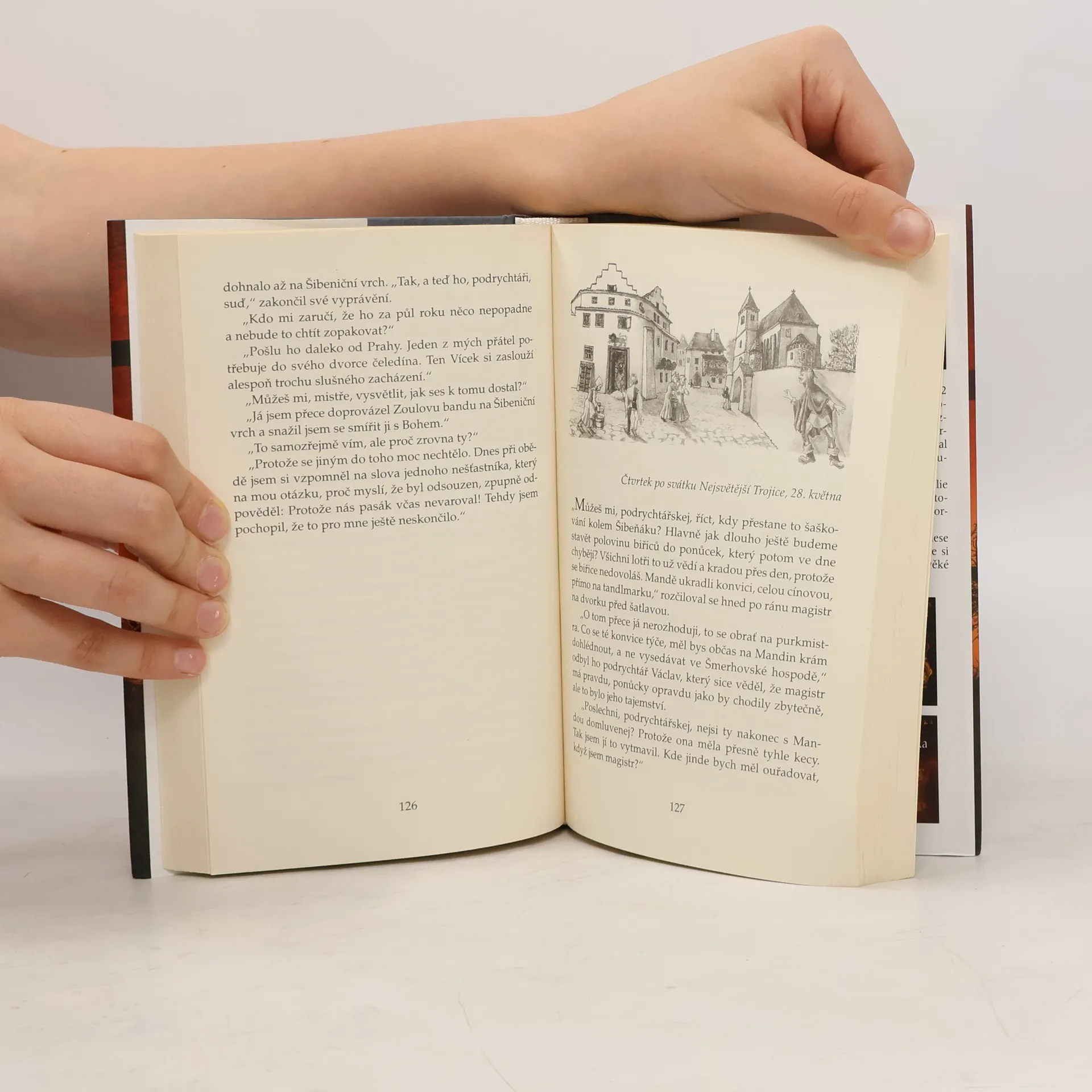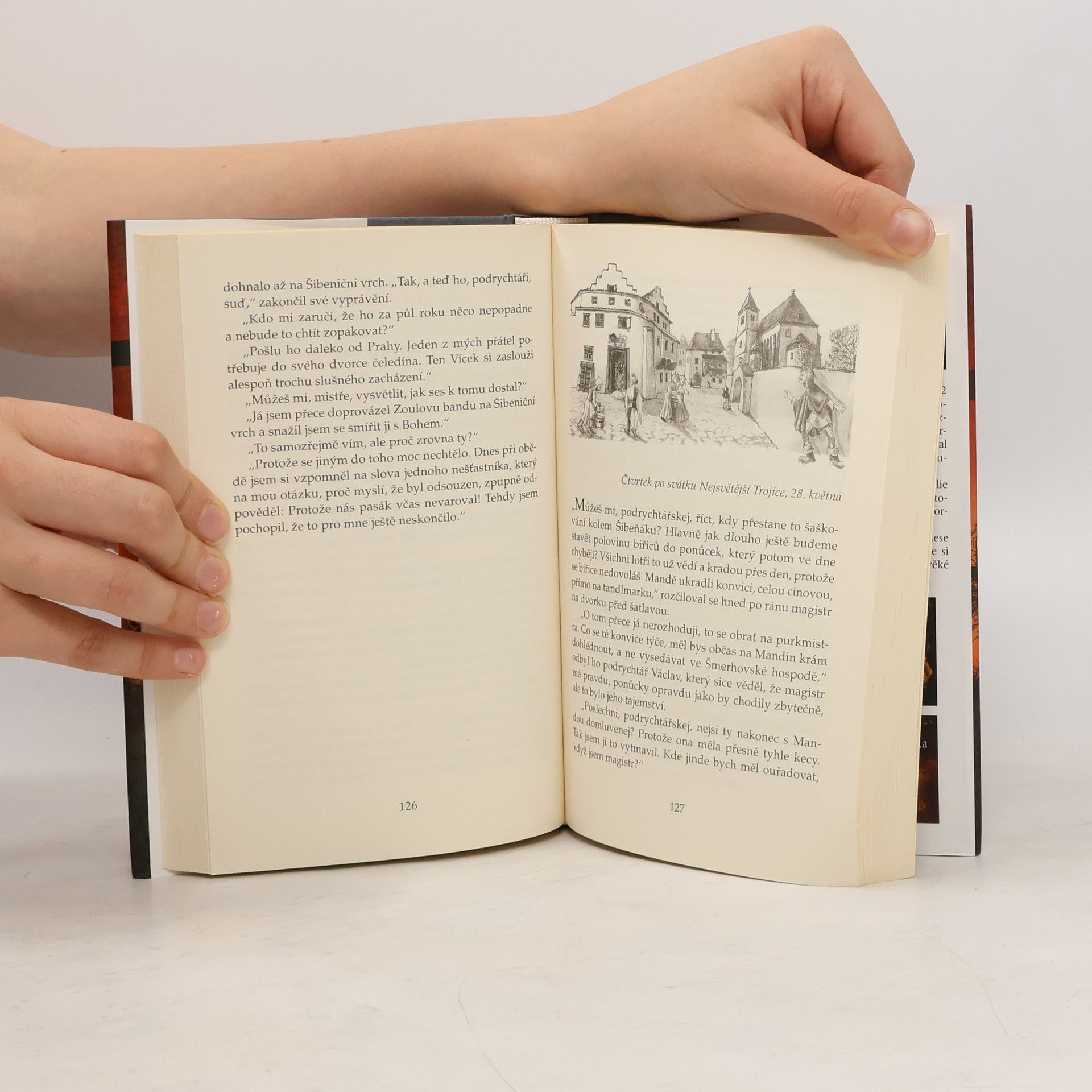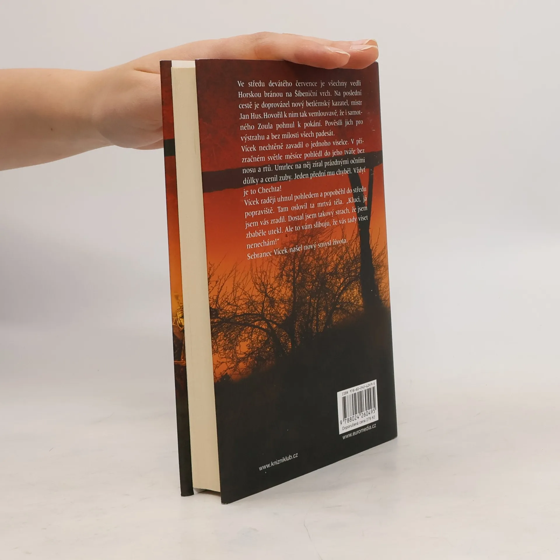 Oblíbený autor uzavírá svou volnou sérii historických příběhů s detektivní zápletkou románem, jehož hlavním hrdinou je opět Václav od Černého koně. Tentokrát řeší velmi zapeklitý případ, neboť u vchodů staropražských domů se znenadání začínají objevovat nebožtíci, které někdo sňal ze Šibeničního vrchu. U kostela svatého Jindřicha se vraždí a podezřelý je i biřic Vohnout. Ale hlavně: Odváží se podrychtář obžalovat všemocného podkomořího Zikmunda Hulera, králova oblíbence, který si nechává říkat Zikmund z Orlíka?