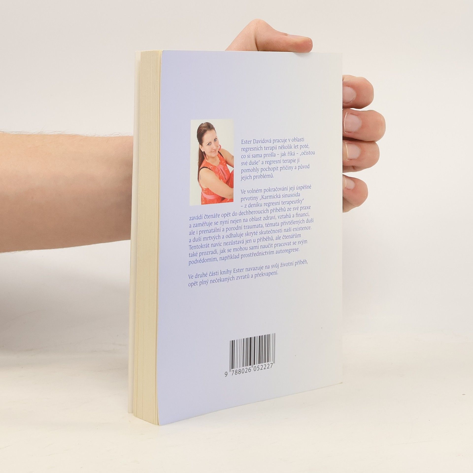 Ester Davidová pracuje v oblasti regresních terapií několik let poté, co si sama prošla - jak říká - očistou své duše a regresní terapie jí pomohly pochopit příčiny a původ jejich problémů. Ve volném pokračování její úspěšné prvotiny "Karmická sinusoida - z deníku regresní terapeutky" zavádí čtenáře opět do dech beroucích příběhů ze své praxe a zaměřuje se nyní nejen na oblast zdraví, vztahů a financí, ale i prenatální a porodní traumata, témata přivtělených duší a duší mrtvých a odhaluje skryté skutečnosti naší existence. Tentokrát navíc nezůstává jen u příběhů, ale čtenářům také prozradí, jak se mohou sami naučit pracovat se svým podvědomím, například prostřednictvím autoregrese. Ve druhé části knihy Ester navazuje na svůj životní příběh, opět plný nečekaných zvratů a překvapení. (Okno do mé duše)