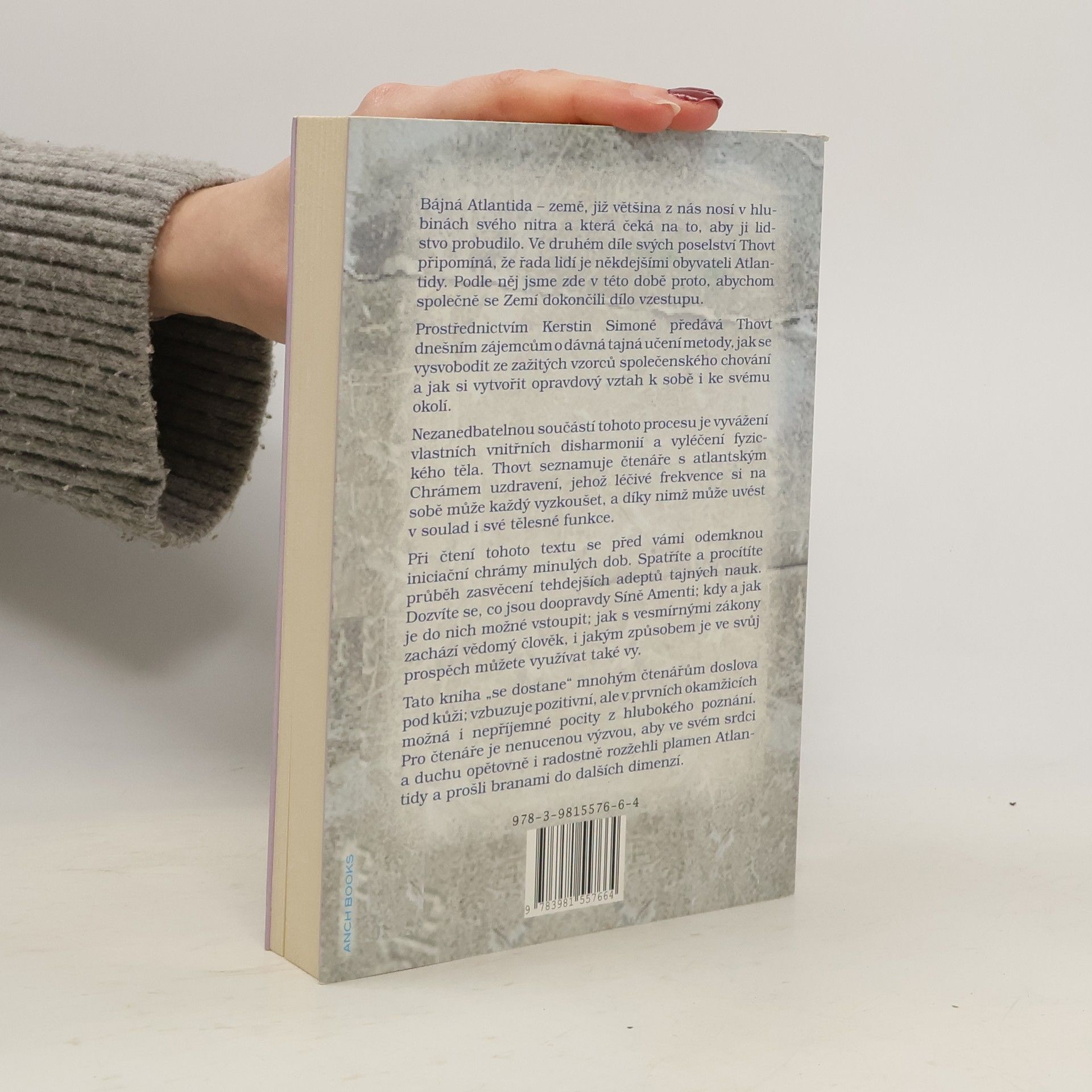Bájná Atlantida – země, již většina z nás nosí v hlubinách svého nitra a která čeká na to, aby ji lidstvo probudilo. Ve druhém díle svých poselství Thovt připomíná, že většina z nás jsou někdejšími obyvateli Atlantidy. Podle něj jsme zde v této době proto, abychom společně se Zemí dokončili dílo vzestupu. Prostřednictvím Kerstin Simoné předává Thovt dnešním zájemcům o dávná tajná učení metody, jak se vysvobodit ze zažitých vzorců společenského chování a jak si vytvořit opravdový vztah k sobě i ke svému okolí. Nezanedbatelnou součástí tohoto procesu je vyvážení vlastních vnitřních disharmonií a vyléčení fyzického těla. Thovt seznamuje čtenáře s atlantským Chrámem uzdravení, jehož léčivé frekvence si na sobě může každý vyzkoušet, a díky nimž může rovněž uvést v soulad své tělesné funkce. Při čtení tohoto textu se před vámi odemknou iniciační chrámy minulých dob. Spatříte a procítíte průběh zasvěcení tehdejších adeptů tajných nauk. Dozvíte se, co jsou doopravdy Síně Amenti; kdy a jak je do nich možné vstoupit; jak s vesmírnými zákony zacházejí vědomí lidé, ba jakým způsobem je ve svůj prospěch můžete využívat i vy. Tato kniha „se dostane“ mnohým čtenářům pod kůži; vzbuzuje pozitivní, ale v prvních okamžicích možná i nepříjemné pocity z hlubokého poznání. Pro čtenáře je nenucenou výzvou, aby ve svém srdci a duchu opětovně i radostně rozžehli plamen Atlantidy a prošli branami do dalších dimenzí.
