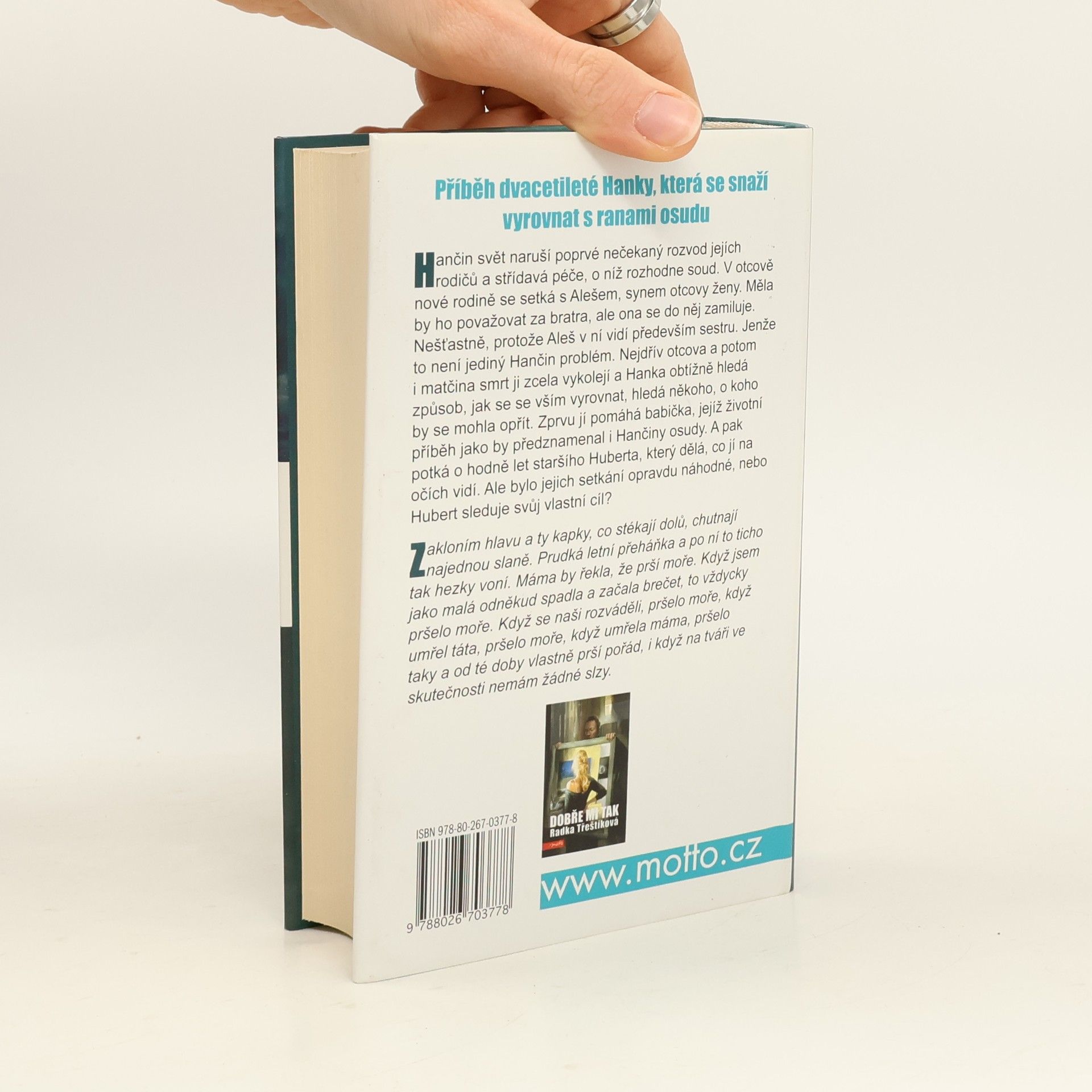 Napínavé psychologické drama jedné zdánlivě obyčejné rodiny, ve kterém autorka umožní čtenáři nahlédnout nejen do křehké duše dvacetileté Hanky, ale také do osudů dalších, vzájemně propojených postav. S lehkostí sobě vlastní vypráví nelehký příběh o pocitech. O bolesti, o nedorozumění, o strachu, o bezpodmínečné lásce, o otázkách a odpovědích, které se všichni snažíme v životě najít. O naději.