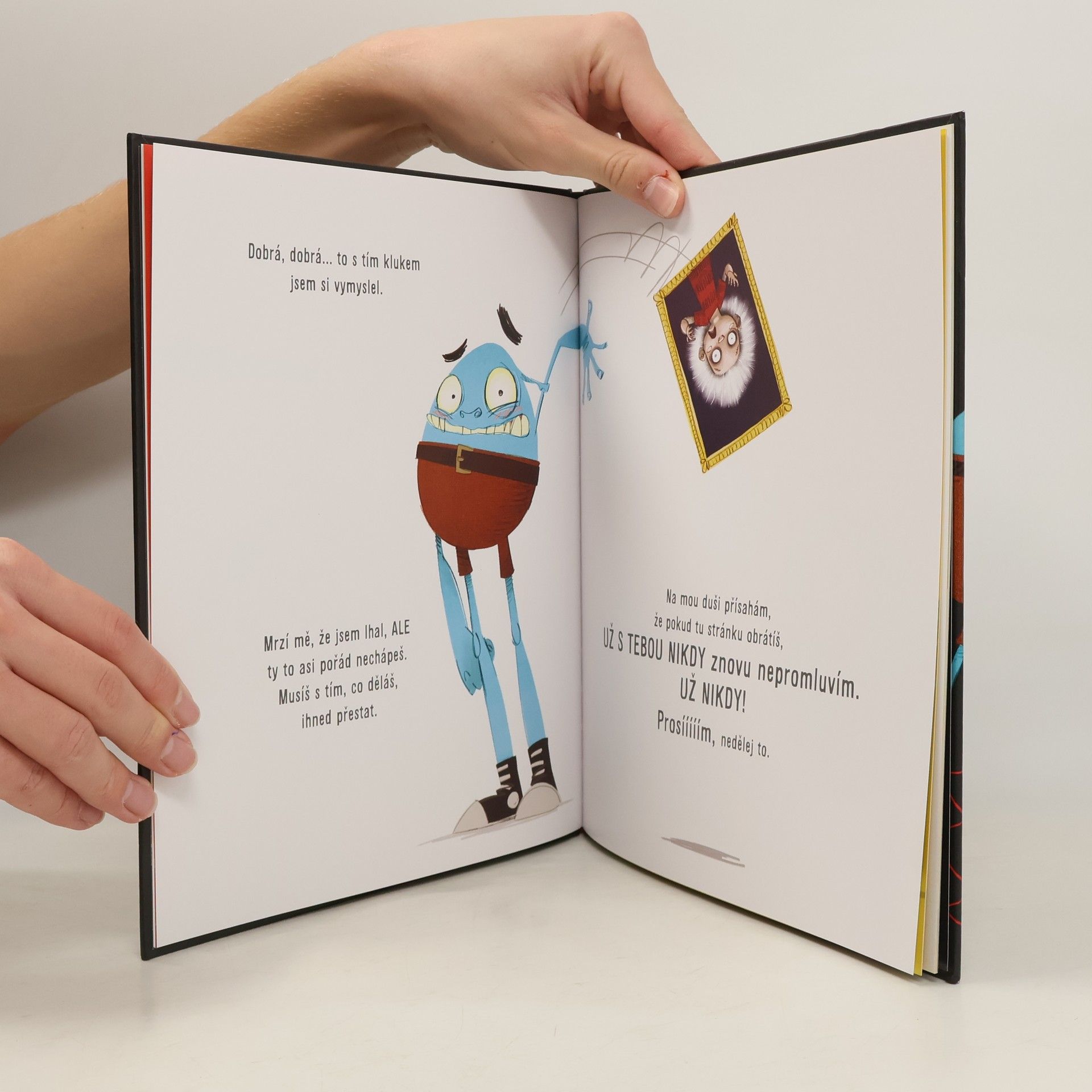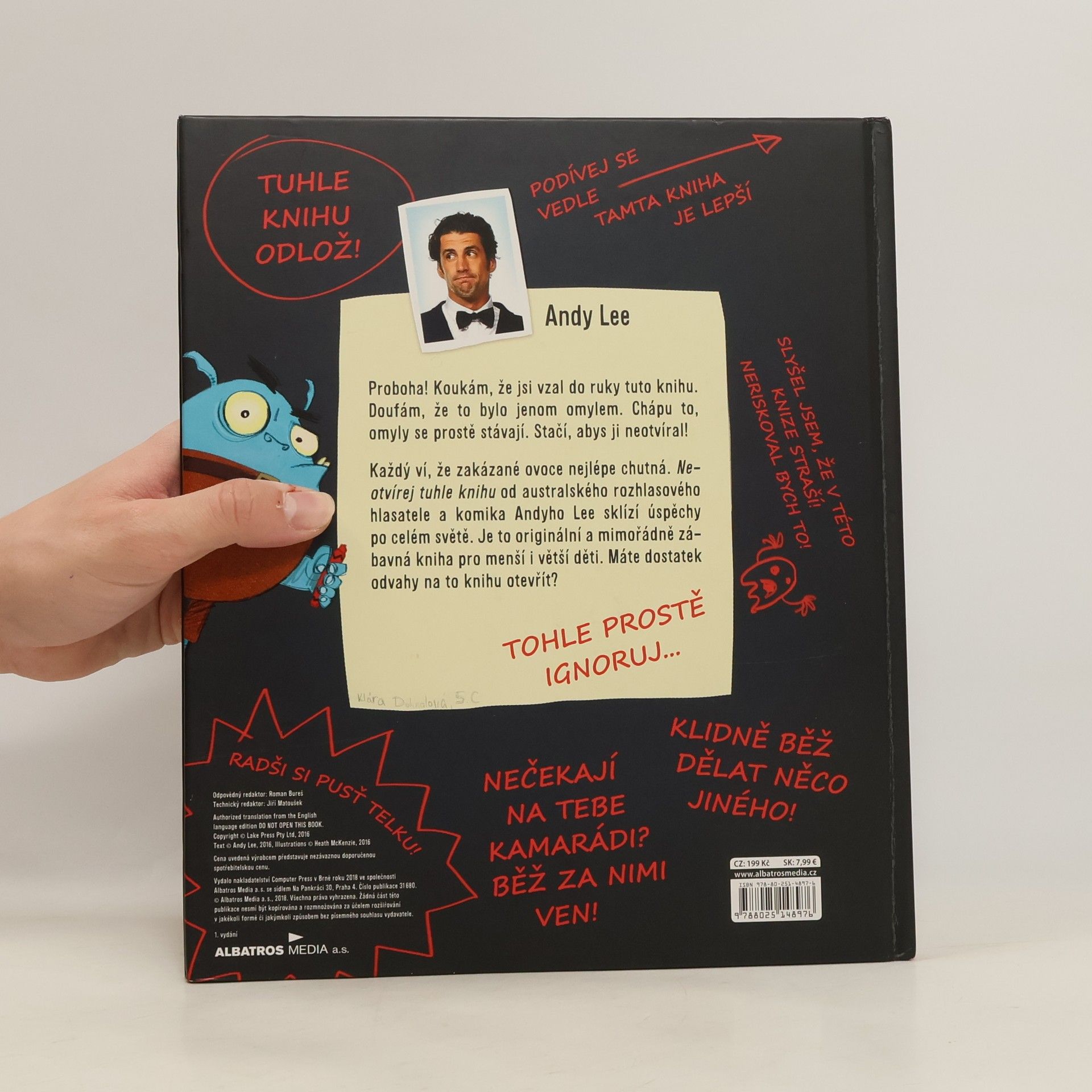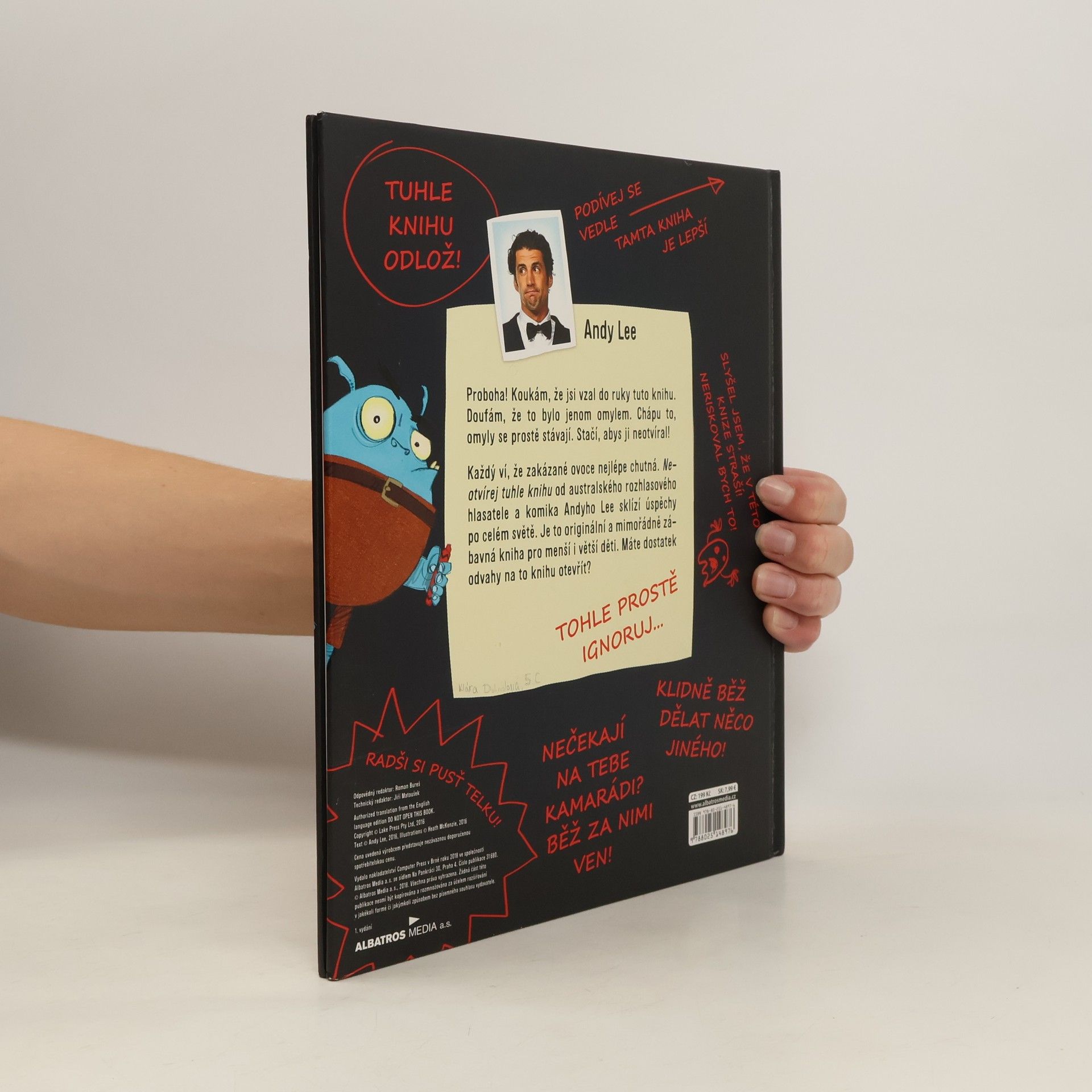 Proboha! Koukám, že jsi vzal do ruky tuto knihu. Doufám, že to bylo jenom omylem. Chápu to, omyly se prostě stávají. Stačí, abys ji neotvíral! A co se stane, když ji náhodou otevřeš? Každý ví, že zakázané ovoce nejlépe chutná. Neotvírej tuhle knihu od australského rozhlasového hlasatele a komika Andyho Lee sklízí úspěchy po celém světě. Je to originální a mimořádně zábavná kniha pro menší i větší děti. Máte dostatek odvahy na to knihu otevřít?