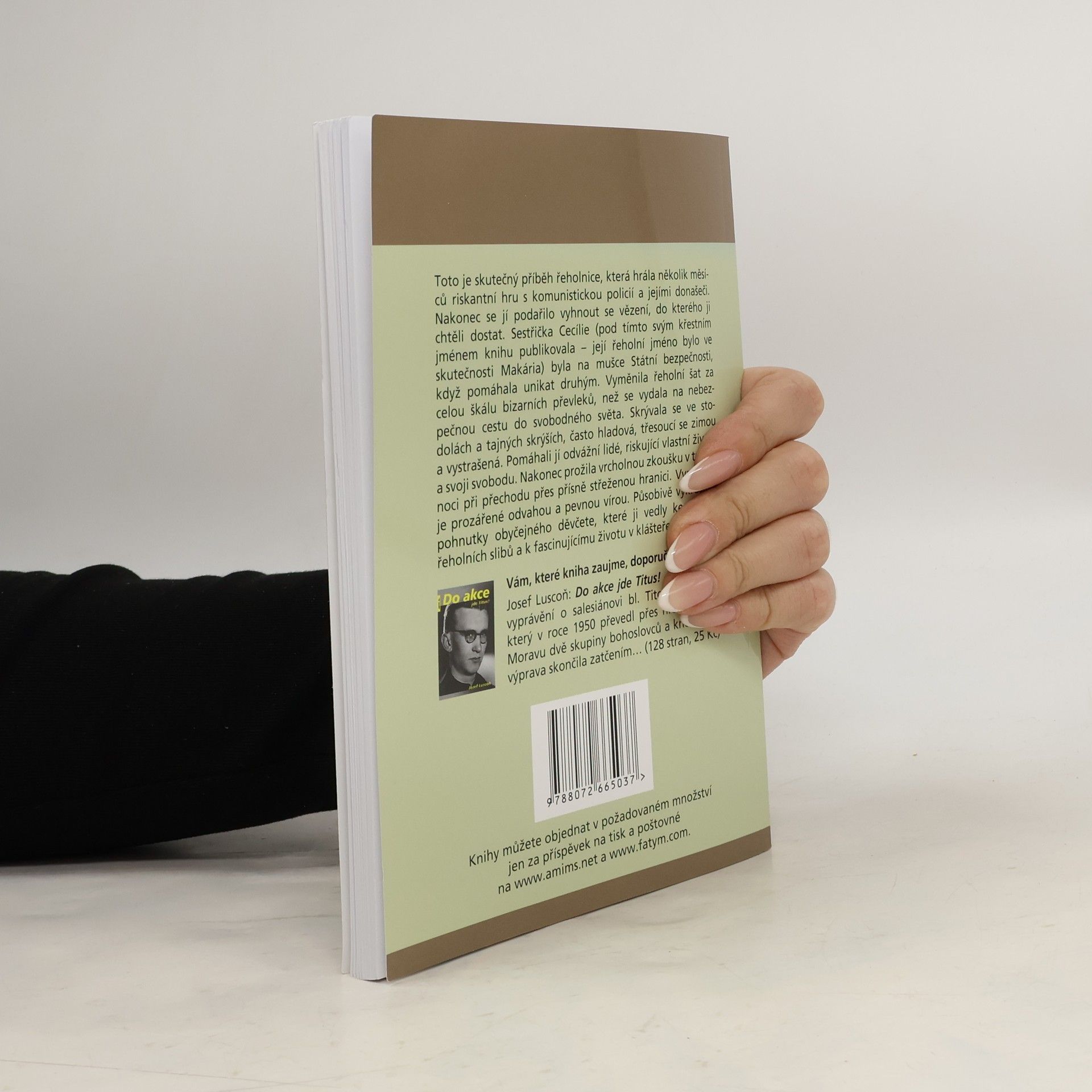 Toto je skutečný příběh řeholnice, která hrála několik měsíců riskantní hru s komunistickou policií a jejími donašeči. Nakonec se jí podařilo vyhnout se vězení, do kterého ji chtěli dostat. Sestřička Cecílie (pod tímto svým křestním jménem knihu publikovala – její řeholní jméno bylo ve skutečnosti Makária) byla na mušce Státní bezpečnosti, když pomáhala unikat druhým. Vyměnila řeholní šat za celou škálu bizardních převleků, než se vydala na nebezpečnou cestu do svobodného světa. Skrývala se ve stodolách a tajných skrýších, často hladová, třesoucí se zimou a vystrašená. Pomáhali jí odvážní lidé, riskující vlastní životy a svoji svobodu. Nakonec prožila vrcholnou zkoušku v tmavé noci při přechodu přes přísně střeženou hranici. Vyprávění je prozářené odvahou a pevnou vírou. Působivě vykresluje pohnutky obyčejného děvčete, které ji vedly ke složení řeholních slibů a k fascinujícímu životu v klášteře.
