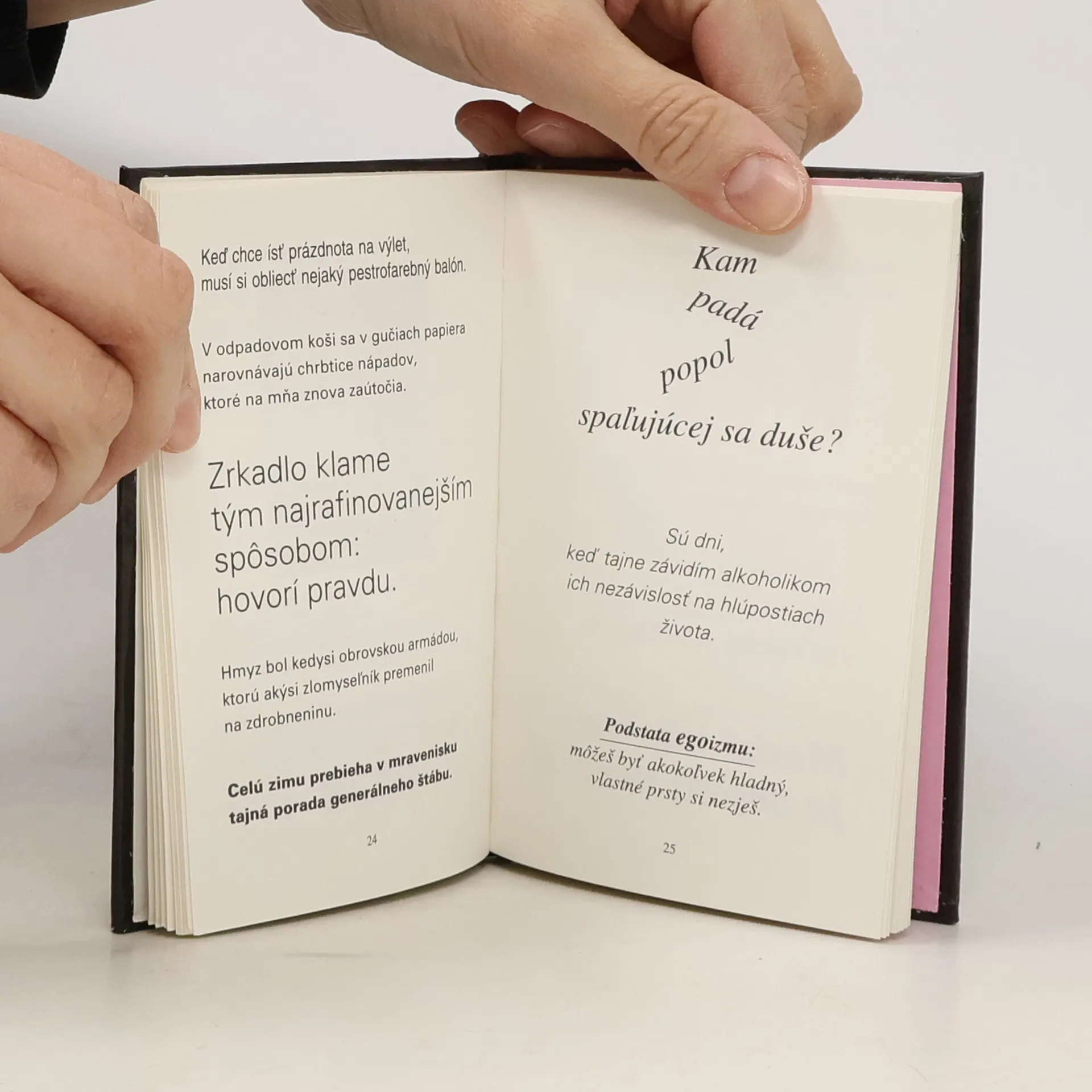 Poetické aforizmy Kamila Peteraja popretkávané ilustráciami Oľgy Johanidesovej.