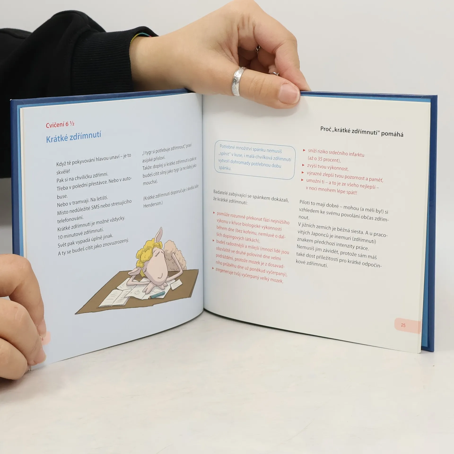 Knížka o přežití. Okamžitá pomoc při nespavosti, špatném spaní a nočních můrách Skvělá příručka pro všechny, koho trápí problémy se spaním. Nemůžete usnout? Máte ráno pocit, že jste unavenější než večer? Pomohou vám naše jednoduchá cvičení s okamžitým efektem na zdravý, hluboký a osvěžující spánek. Patříte k těm nešťastníkům, kteří si jdou večer lehnout úplně vyčerpaní a přesto nemohou usnout? Nebo se vám podaří "zabrat", ale probudíte se po dvou hodinách? Trápí vás noční můry a skřípání zubů - a ráno se pak vůbec nemůžete probrat? Skončete s tím! Místo beznaděje a prášků na spaní se znovu naučte dobře spát - s pomocí ovečky Oskara, jeho přítelkyně Emilky, šťastné ovečky Vildy a dobře vyspané Růženky. Naučíte se 12 nových, jednoduchých cvičení, které vám pomohou při krátkém zdřímnutí i k hlubokému spánku. Naše cvičení můžete dělat kdykoli a kdekoli. Jsou rychlá, jednoduchá a účinná.