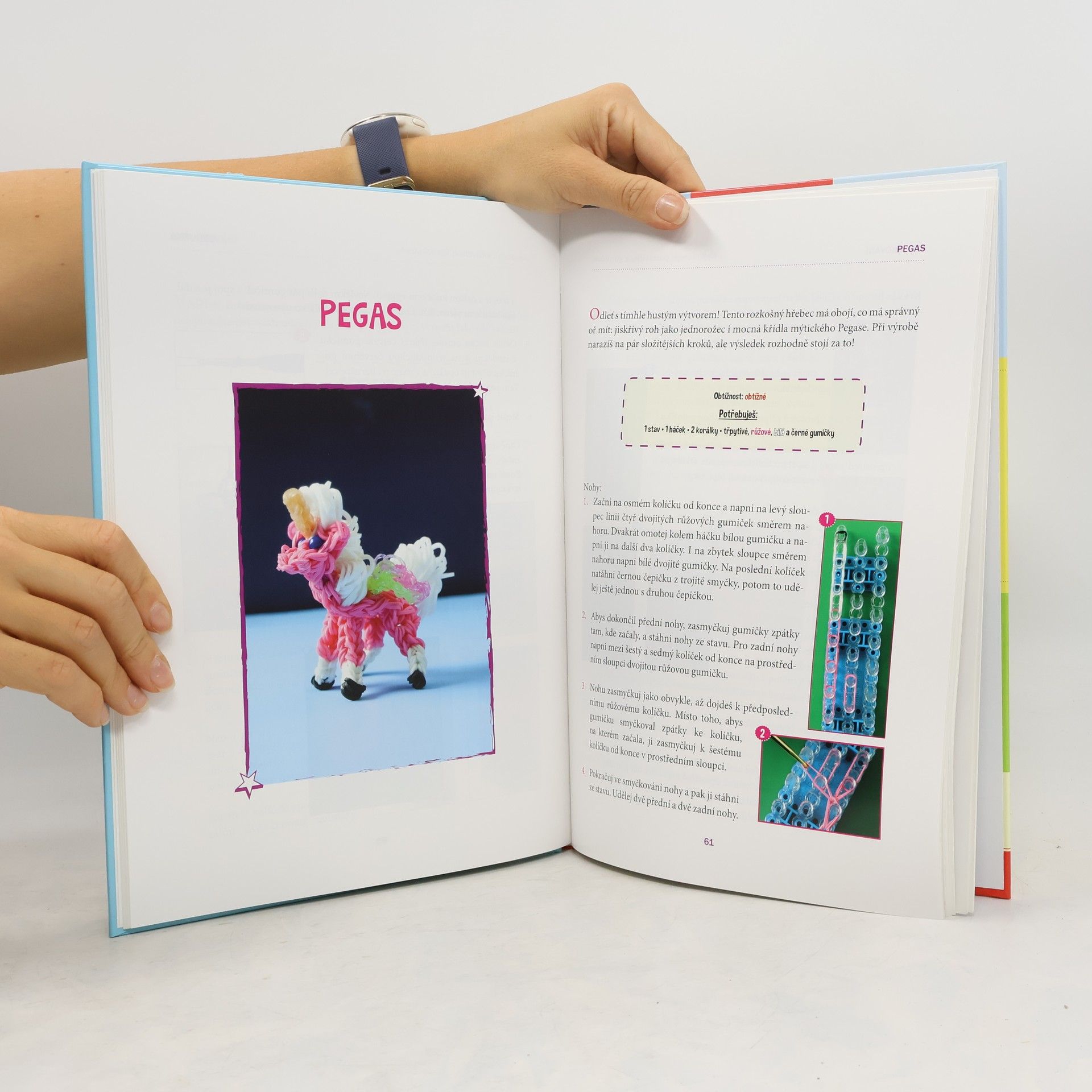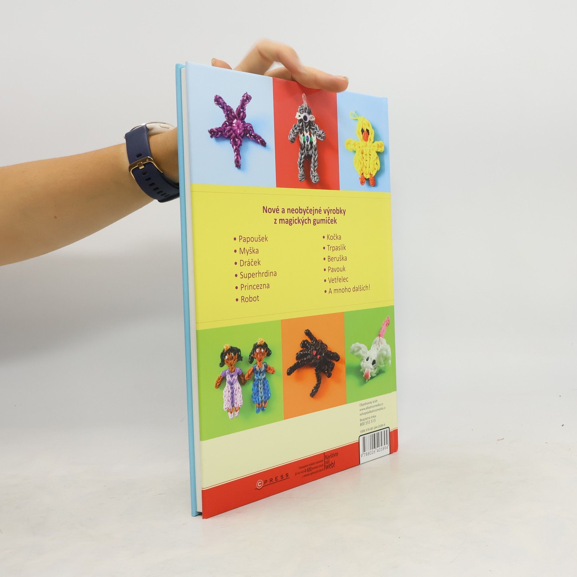 Zvířátka a mýtická stvoření. Holky i kluci gumičky prostě milují! Nosit náramek z barevných gumiček je velká móda. Ovšem nyní můžeš uplést daleko více! Přinášíme 25 zcela nových a neobyčejných nápadů, díky kterým si užiješ zábavu a ještě se blýskneš před kamarády. Srozumitelné návody doprovázené názornými fotografiemi ti umožní vyrobit roztomilá zvířátka a fantastické postavičky, které využiješ třeba jako přívěsky na šperky či batoh nebo jako dárky a talismany. • Papoušek • Kočka • Myška • Trpaslík • Dráček • Beruška • Superhrdina • Pavouk • Princezna • Vetřelec • Robot • A mnoho dalších!