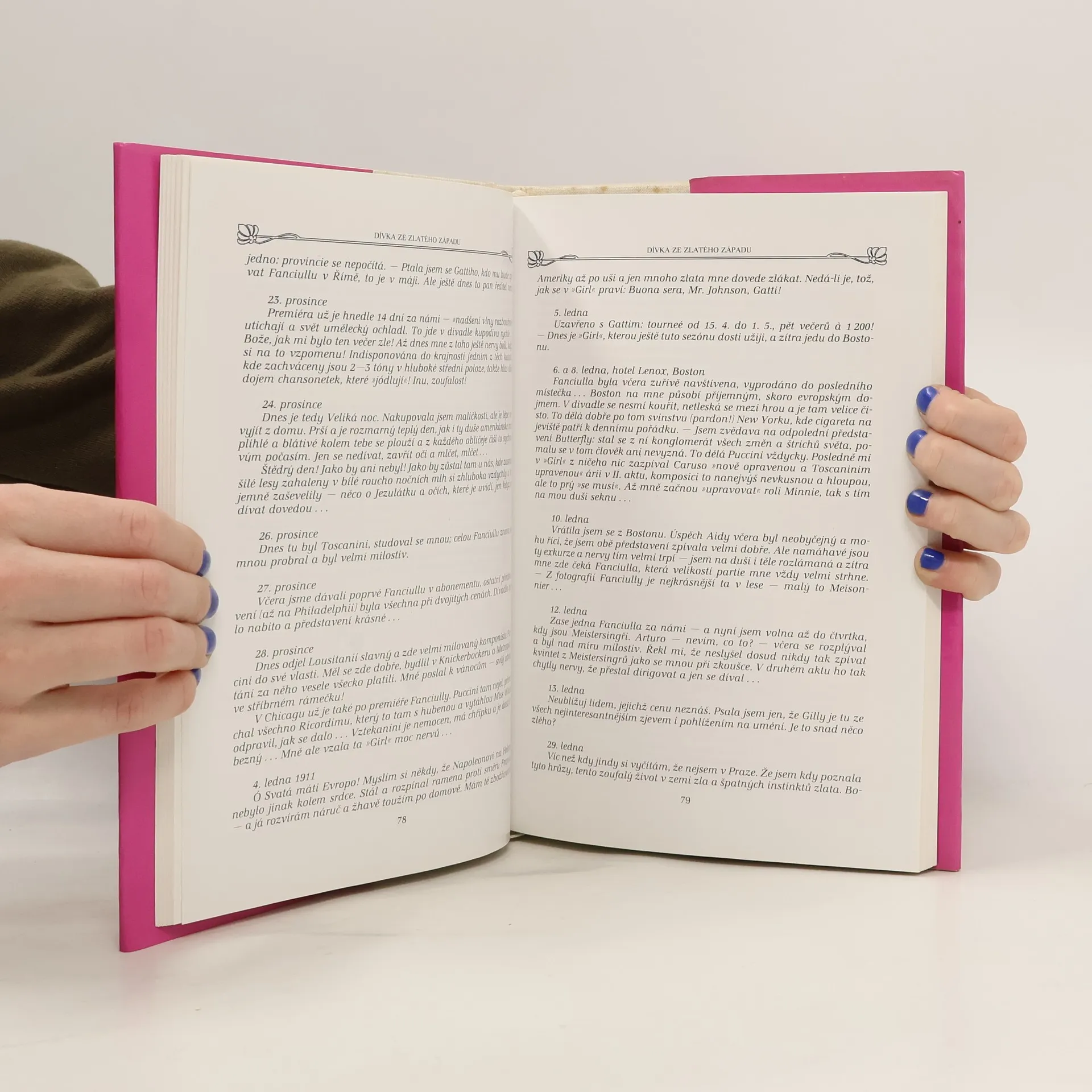 Kniha je zajímavá tím, že autor věnoval skutečně mnoho pozornosti početné korespondenci pěvkyně, z níž v knize často cituje, uvádí také svědectví současníků či úryvky z dobového tisku a dalších písemností z pražských a mimopražských archivů. Jaká byla, když se narodila… „O svém narození Destinnová ráda vyprávěla se sarkastickým humorem jí vlastním. Narodila se v hodině, kdy šel kolem jejich domu v Kateřinské ulici ‚proti blázinci‘ pohřební průvod; přišla na svět škaredá jako vrána s černým porostem na špičaté hlavě, s pytlíčky pod očima, až se jí její krásná matka zhrozila…“ Těžké začátky – pokus získat angažmá v Národním divadle: „Vstoupila tehdy s otcem do budovy divadla a byla tam očekávána třemi pány – ředitelem Šubertem, kapelníkem Adolfem Čechem, který zasedl ke klavíru, a druhým kapelníkem Mořicem Angrem. Nezpívala na jevišti za doprovodu orchestru, jak očekávala, nýbrž ve sborovém sále v nejvyšším patře budovy. Na otázku, co přednese, odpověděla: Carmen, neboť byla přesvědčena, že touto rolí ohromí triumvirát rozhodčích. Byla to tehdy její nejoblíbenější divadelní postava a v nejednom směru se s ní i v životě ztotožňovala: nosila v uších velké kruhy jako Carmen, ve stejném stylu se oblékala a upravovala svůj účes. Když dozněla Habanera, vyžádal si kapelník Čech další ukázku a Ema zazpívala árii z druhého jednání téže opery. To už řediteli Šubertovi stačilo k tomu, aby pronesl soud: ‚Slečno, zdá se mi, že se při zpívání rozčilujete. Doporučuji vám, abyste brala sprchy.‘ Rána dopadla tvrdě, že sotva bylo možno očekávat krutější ortel. O zpěvu ani slovo, jen urážka, jakých se pak Kittlové v jejích začátcích dostalo ještě několik.“ Ema Destinnová o Straussově Salome: „18. října [1906] Ta Salome bude mou zkázou! Uvidíte to. Už začínám bláznit. Všude jen to šílenství bez cíle, beztělé, jen stále ten motiv horečné touhy: ‚Lass mich Deinen Mund küssen, Jochanaan‘. K zoufání! A těžká je ta partie, strašlivě těžká… 28. října Mluvíte o Salome. Hrůza! Vlasy se mi při ní ježí, snad strachem nebo studem… Ta hudba Richarda Strausse je šílenství anebo chcete-li horečkou, otravou opiem; hašiš, belladonna, sny morfinisty. Narážím po každé zkoušce ½ hodiny čelem o zeď nebo klavír, to mne zas vrátí světu. 31. října Já jsem věru víc než zapřažena, teď každý den dvě hodiny Salome, až mne z toho duše brní a mozek vysýchá. Pravíte, že slč. Schubert je Bavarií, co pak teď já? Jsem také pro Salome příliš tlustá, ale nejde to všecko… hlas mít a figuru, hlas ujde, avšak ostatní… 14. listopadu Včera jsem uviděla figurínu pro Salome mně intendantem určenou, dejž nebe, abych ten ‚dojem‘ dobře zažila! Něco děsného. Dlouhá košile z fialového crepe de chine, skoro ke krku, vlečka, dlouhé rukávy! Začla jsem zuřit a řekla, že nepůjdu takto ven. […] Nu, Vy mne znáte. Řekla jsem, že neprosadím-li svůj vlastní kostým, že toho vůbec nechám! Ať si zpívá Salome v noční košili kdo chce! 12. prosince Dnes se nade mnou dala má hospodyně Anděla do pláče, vypadám prý tak bídně a hubeně, že je to až hrozné. Věřím jí: Salome nepřispívá nikterak k zachování duševní rovnováhy…“ Amerika, Toscanini: „Zítra přistaneme v Městě Smutku. Nic mne tam netáhne, mám úzkost před Titánem Skokaninim, jak na mne vyvalí oči, když uvidí, že z Fanciully nic, ale nic neumím… 23. listopadu Jsem špatně při hlase a večer je Gioconda, opera mně nanejvýš protivná. Noscanini je pln žluče a choval se včera jako úplný blázen – všemu rozumí lépe a s Puccinim se i o tempa hádá – vjedou si určitě do vlasů… se mnou zachází jako se školačkou a nejraději by snad na mne vzal rákosku. Puccini je opravdu trpělivý a nechá si přede všemi vykládat od toho pána rozumy. Zítra – o můj svátek – si asi znovu ‚zaprubujeme‘. To budu opuštěná a smutná, ale Maestro Vztekanini mi asi vrazí pěknou zkoušku a při té nebudu mít na stesk čas… 25. listopadu Včera jsme zkoušeli až do 12 v noci a T. dostával různé záchvaty vzteku. Konečně jsem prohlásila, že mě ani nenapadne zkoušet dál, že už nemohu. Divím se, že mi nenapráskal!“