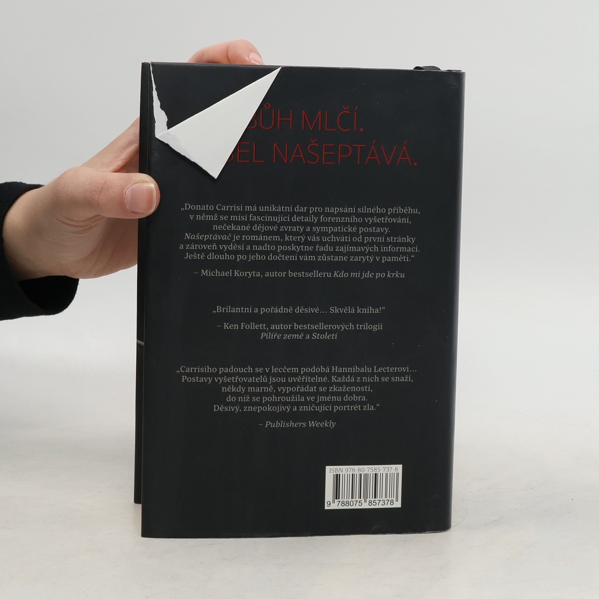 V lese je nalezeno pohřbených šest useknutých rukou. Jsou uspořádány do tajemného kruhu a zdá se, že patří chybějícím dívkám mezi 8 a 13 lety. Zbytky těl ale nikde nalezeny nebyly. Případ dostal kriminolog Goran Gavila. Nerudný, vzpurný muž musí spolupracovat s mladou policistkou Milou Vasquezovou, která má pověst odborníka na pohřešované děti. Má totiž svou vlastní tragickou minulost, která ji zanechala poškozenou a neschopnou něco cítit. Je to výbušný, ale podivným způsobem fungující vztah. A když v lese odhalí další tajemství, stále víc mají své životy navzájem v rukou. Úchvatný literární thriller, který smetl Itálii. Našeptávač rozpoutal podobnou bouři jako romány Stiega Larssona. Tento román je výjimečný - provokuje, je inteligentní a nepoddajný.