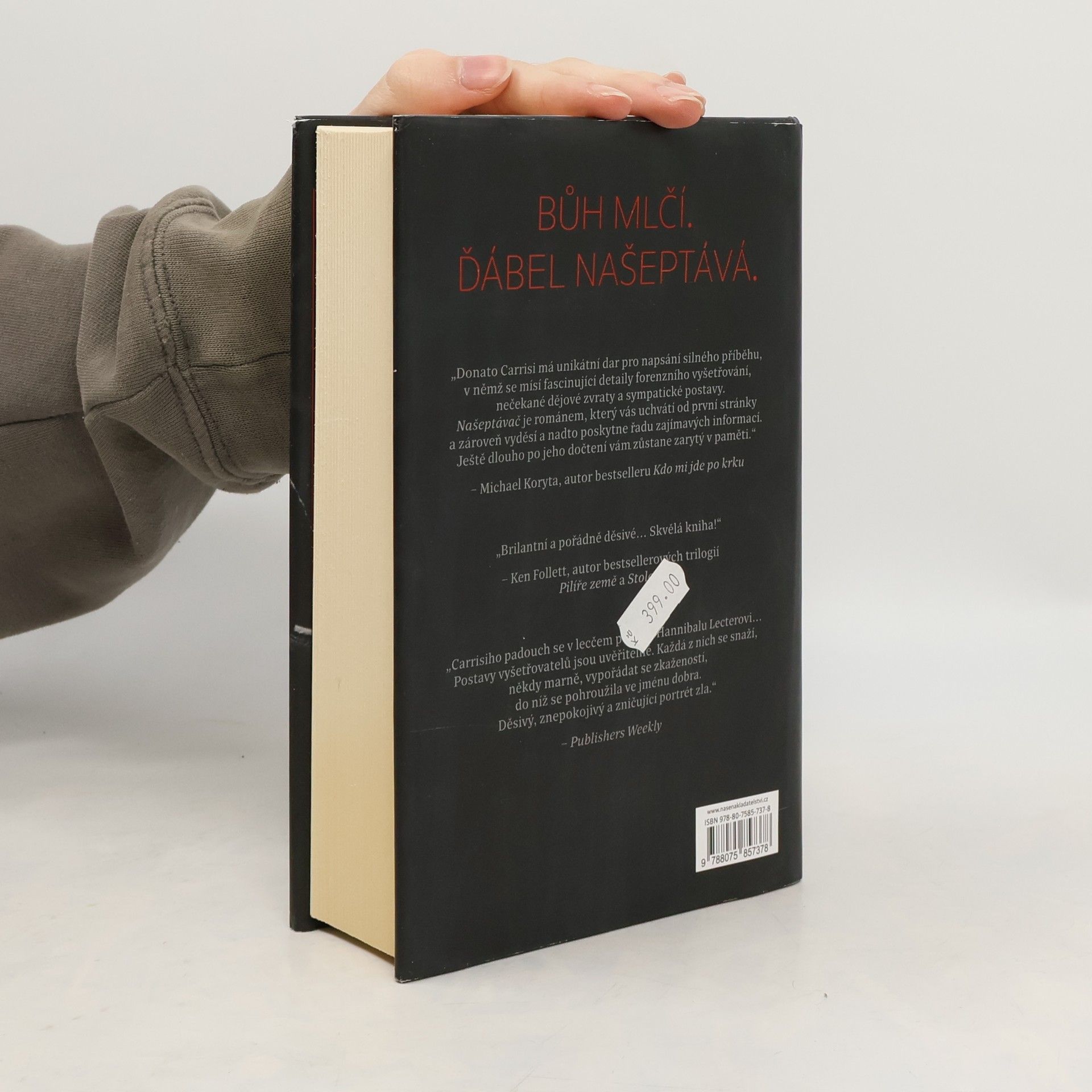 V lese je nalezeno pohřbených šest useknutých rukou. Jsou uspořádány do tajemného kruhu a zdá se, že patří chybějícím dívkám mezi 8 a 13 lety. Zbytky těl ale nikde nalezeny nebyly. Případ dostal kriminolog Goran Gavila. Nerudný, vzpurný muž musí spolupracovat s mladou policistkou Milou Vasquezovou, která má pověst odborníka na pohřešované děti. Má totiž svou vlastní tragickou minulost, která ji zanechala poškozenou a neschopnou něco cítit. Je to výbušný, ale podivným způsobem fungující vztah. A když v lese odhalí další tajemství, stále víc mají své životy navzájem v rukou. Úchvatný literární thriller, který smetl Itálii. Našeptávač rozpoutal podobnou bouři jako romány Stiega Larssona. Tento román je výjimečný - provokuje, je inteligentní a nepoddajný.