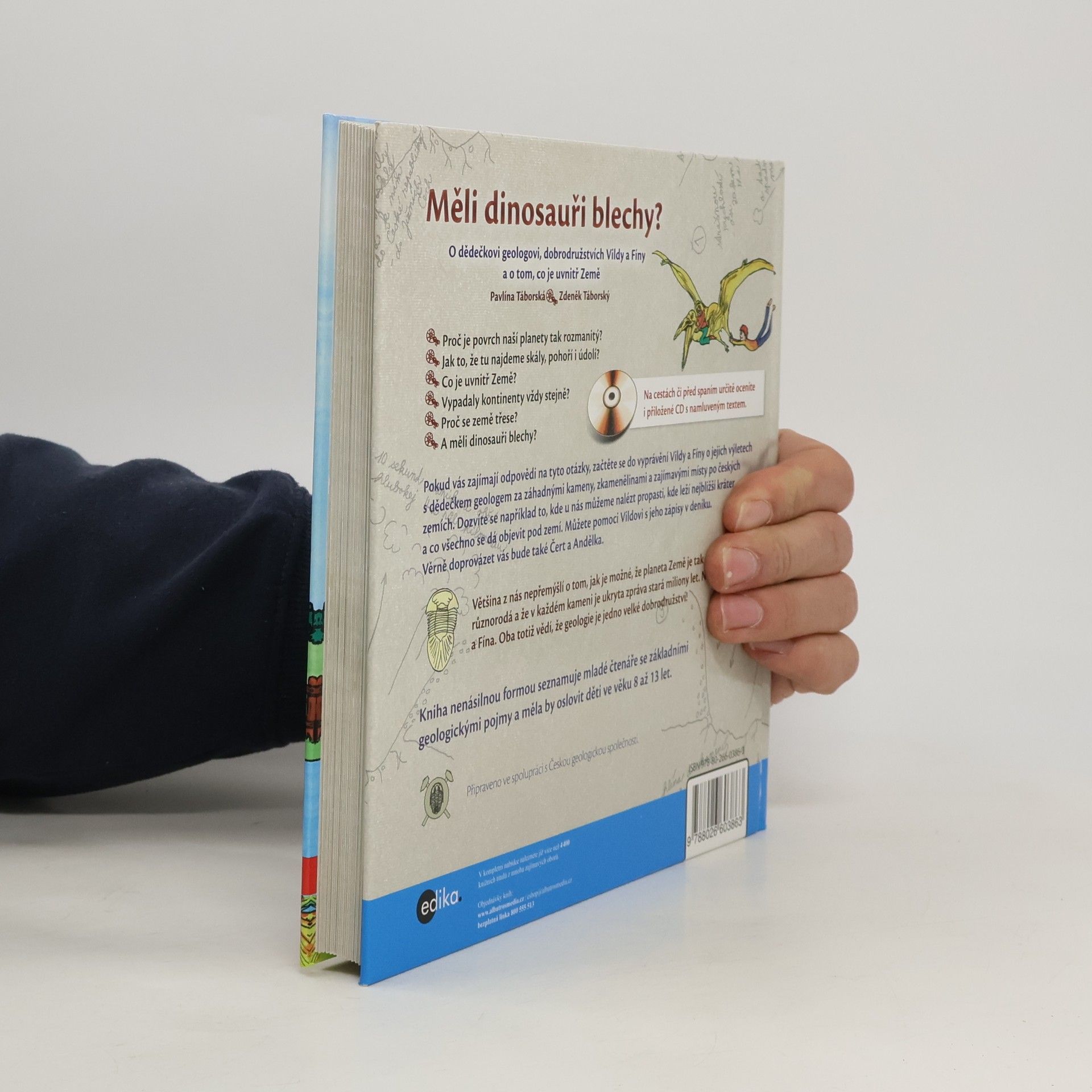 Proč je povrch naší planety tak rozmanitý? * Jak to, že tu najdeme skály, pohoří i údolí? * Co je uvnitř Země? * Vypadaly kontinenty vždy stejně? * Proč se země třese? * A měli dinosauři blechy? Pokud vás zajímají odpovědi na tyto otázky, začtěte se do vyprávění Vildy a Fíny o jejich výletech s dědečkem geologem za záhadnými kameny, zkamenělinami a zajímavými místy po českých zemích. Dozvíte se například to, kde u nás můžeme nalézt propasti, kde leží nejbližší kráter a co všechno se dá objevit pod zemí. Můžete pomoci Vildovi s jeho zápisy v deníku. Věrně doprovázet vás bude také Čert a Andělka. Většina z nás nepřemýšlí o tom, jak je možné, že planeta Země je tak neuvěřitelně různorodá a že v každém kameni je ukryta zpráva stará miliony let. Ne tak Vilda a Fína. Oba totiž vědí, že geologie je jedno velké dobrodružství! Kniha nenásilnou formou seznamuje mladé čtenáře se základními geologickými pojmy a měla by oslovit děti ve věku 8 až 13 let.