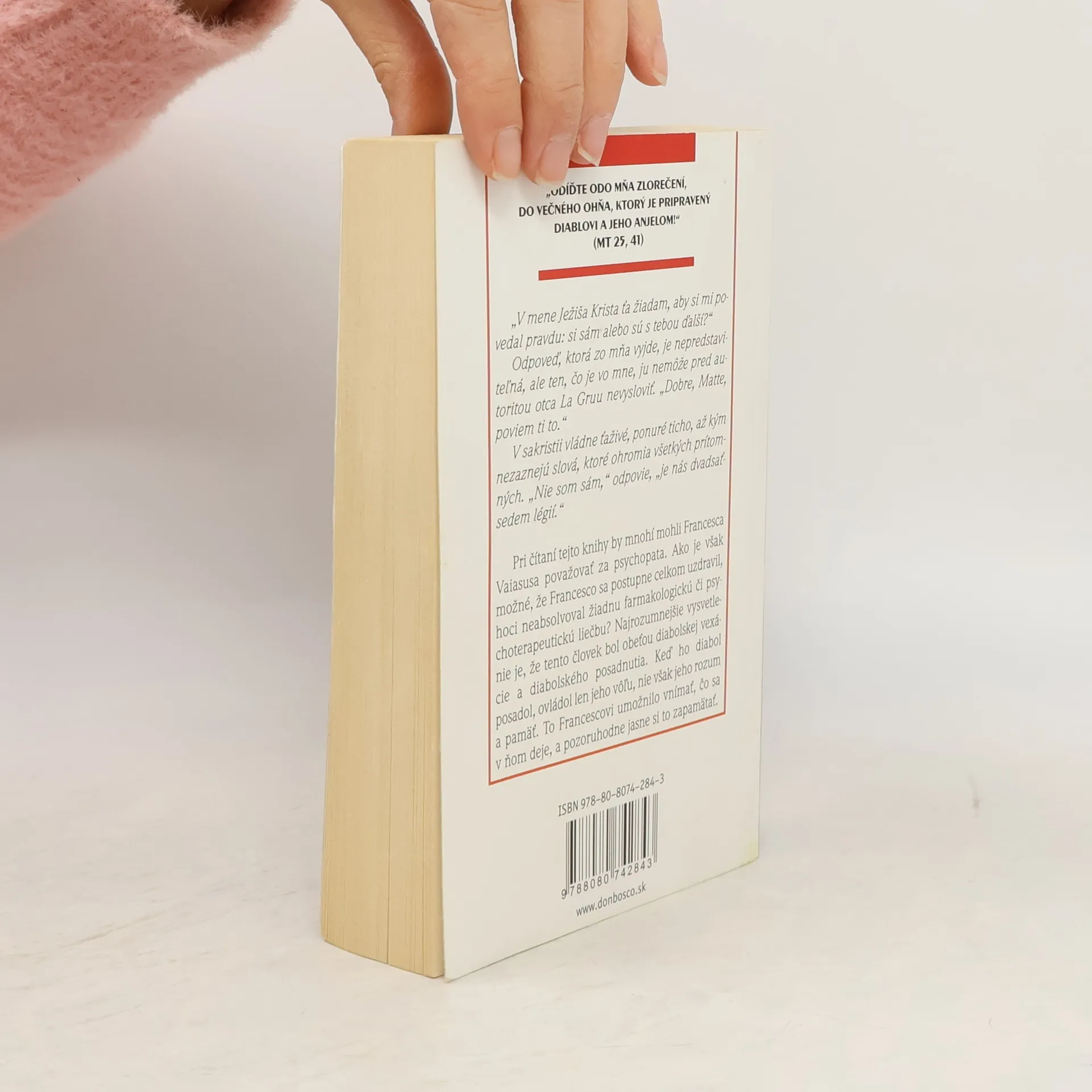 Až do svojich 31 rokov si Francesco Vaiasuso ani len nedokázal predstaviť kto, alebo čo, sa zmocnilo jeho tela. Uvedomil si to až po stretnutí s kňazom exorcistom otcom Matteom La Grua, ktorý sa nad ním modlil aby vyhnal satana a 27 légii, ktoré dlho trápili jeho telo, myseľ a dušu. Tu začína každodenný boj so silami temnoty, aby zahnali zlých duchov, ktorý tajne ničili jeho život. Všetko to malo pôvod v jeho detstve. Kniha je šokujúcim svedectvom prvej osoby, ktorá prežila väčšinu svojho života posadnutá diablom. Odo dňa prvého exorcizmu nasleduje mnoho iných rituálov, kým bude Francesco slobodný. Táto kniha sa dá čítať na jeden nádych a učí, ako sa brániť pred Zlým v súčasnom živote každého z nás.