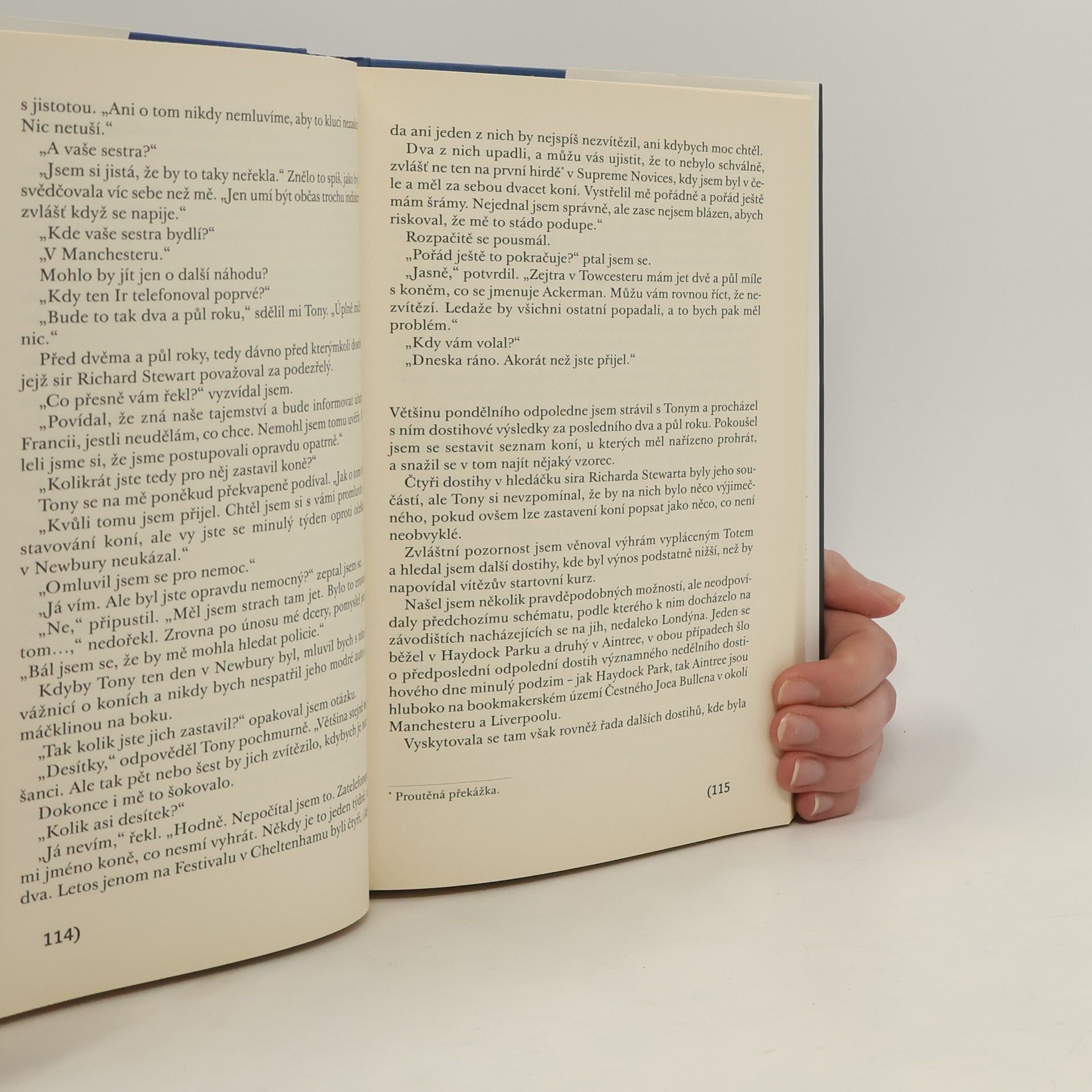 Sid Halley, se vrací na scénu v novém strhujícím příběhu Felixe Francise. Před šesti lety opustil Sid Halley svou vyšetřovatelskou dráhu, během níž mnohokrát zažil pronásledování, ponižování, bití, byl postřelen, a dokonce přišel o ruku. Kvůli manželce a malé dcerce se vzdal nebezpečného a nejistého života s představou, že ho do této hry již nic nenaláká. Jenomže to se mýlil. Sir Richard Stewart, předseda dostihového vedení, požádá Sida, aby prošetřilo sérii podivných výsledků v řadě dostihů. Sid nejprve rozhodně odmítne, ale následující den je za podezřelých okolností sir Richard nalezen mrtvý. Poté se však vyšetřovateli ozve neznámý muž s irským přízvukem a nutí ho, aby o podezřelých dostizích vypracoval očišťující zprávu. Sid si uvědomuje, že se nepříteli musí postavit v otevřeném boji – jinak by mohl za své odmítnutí poslušnosti zaplatit cenu nejvyšší.